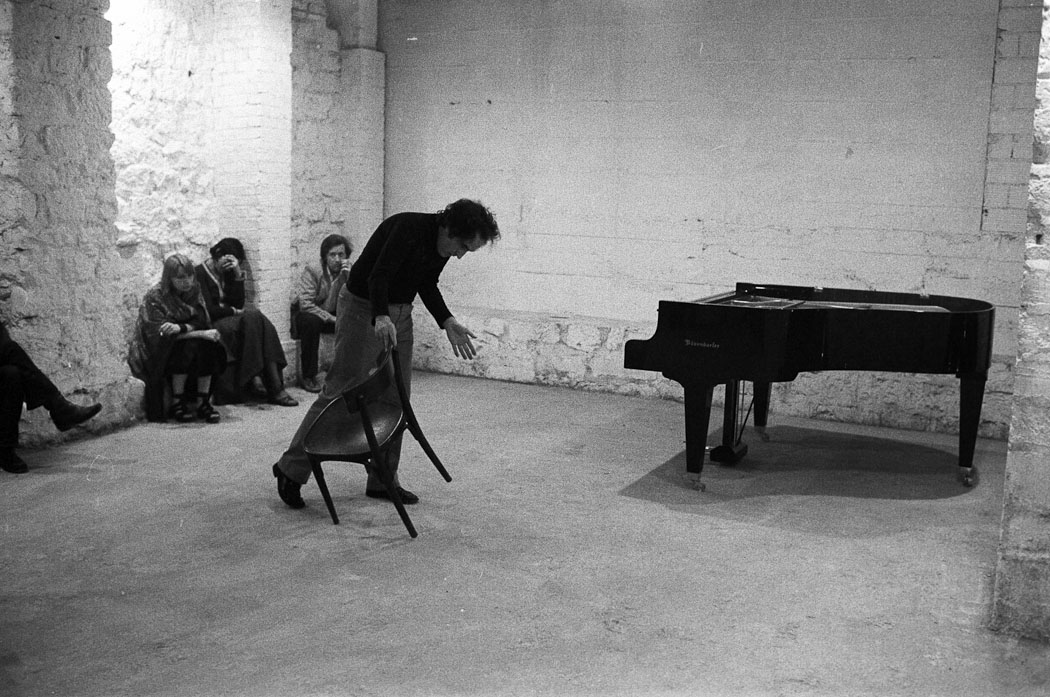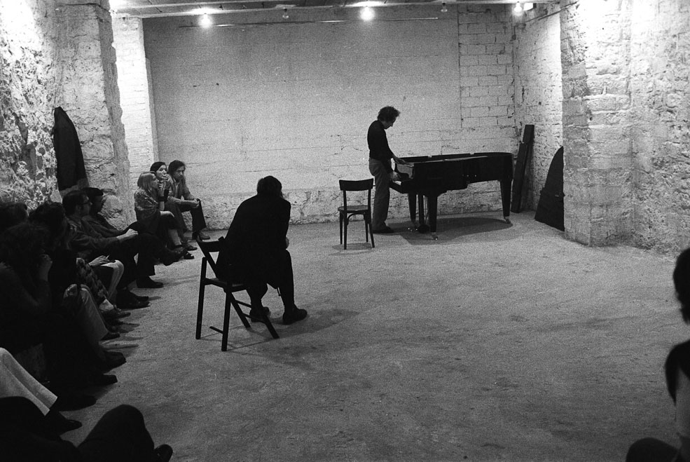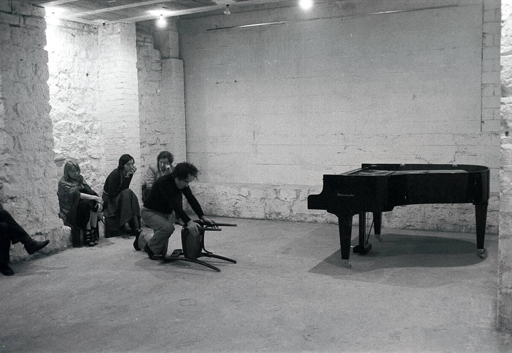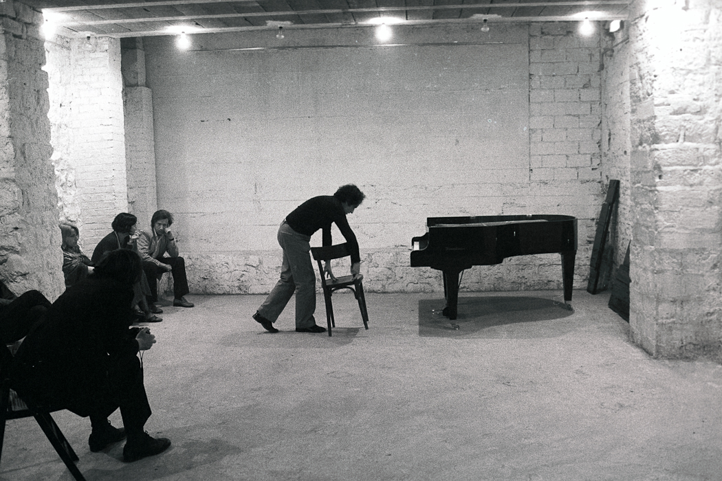 Documentation of Galerie 1-36 in Paris; Galerie 11 - Giuseppe Chiari's concert (photographs by Eustachy Kossakowski)