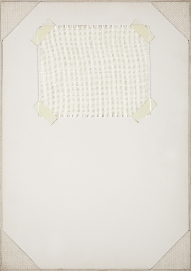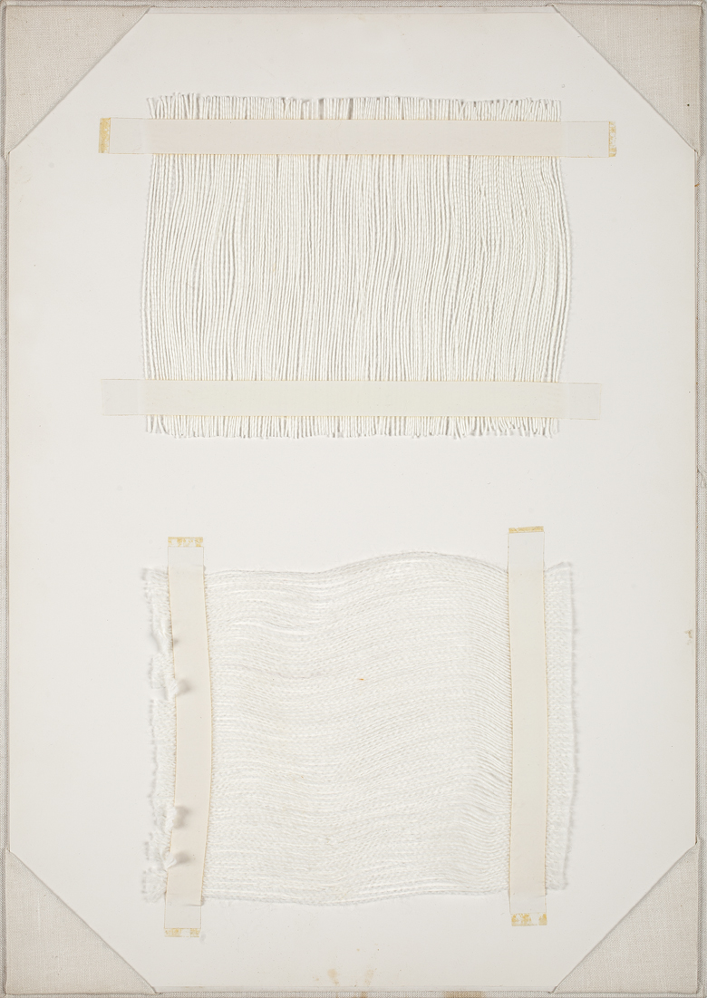 White strings attached to white cardboard