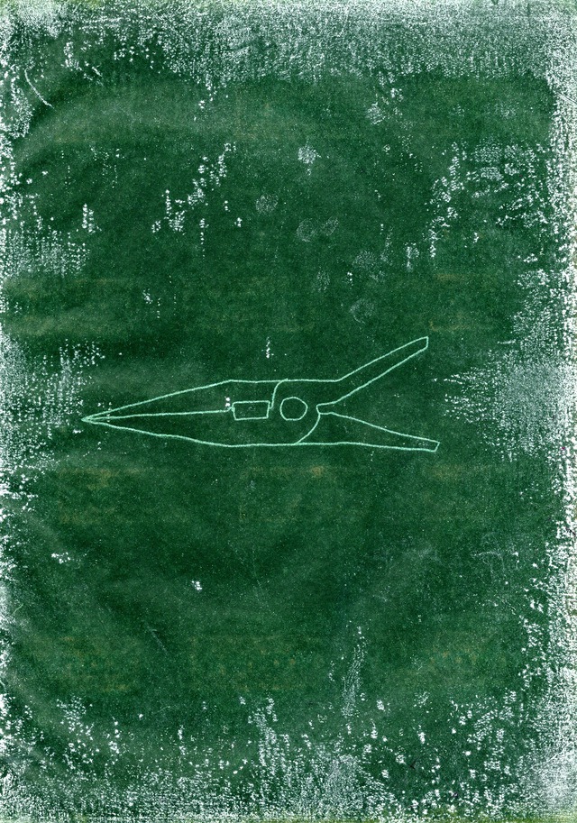 Carbon paper drawings - Words, Knives, Dried Pears, Letters, Grasses, Buttons, Underpants, Pliers, Bottles and other drawings