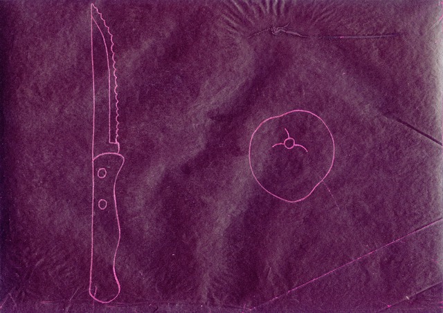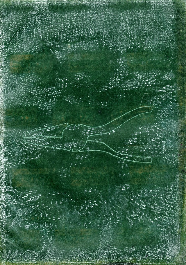 Carbon paper drawings - Words, Knives, Dried Pears, Letters, Grasses, Buttons, Underpants, Pliers, Bottles and other drawings