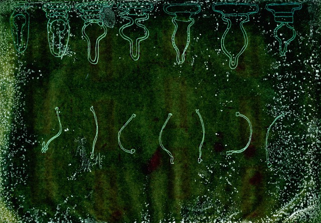 Carbon paper drawings - Words, Knives, Dried Pears, Letters, Grasses, Buttons, Underpants, Pliers, Bottles and other drawings