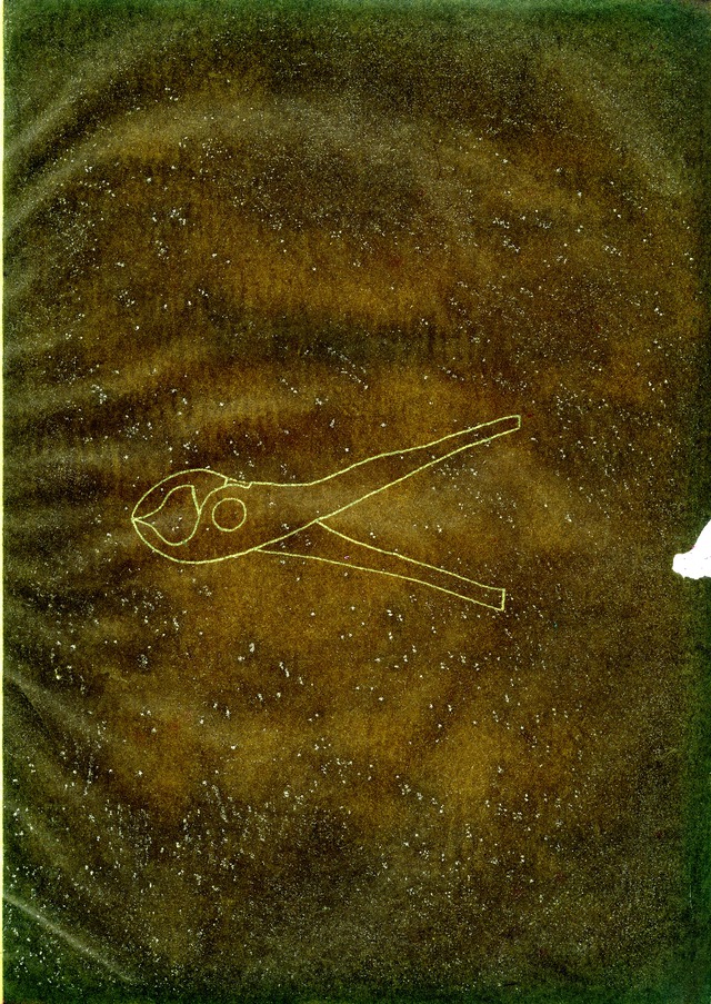 Carbon paper drawings - Words, Knives, Dried Pears, Letters, Grasses, Buttons, Underpants, Pliers, Bottles and other drawings
