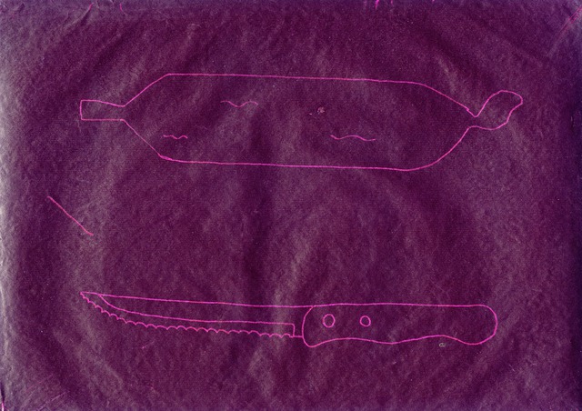 Carbon paper drawings - Words, Knives, Dried Pears, Letters, Grasses, Buttons, Underpants, Pliers, Bottles and other drawings