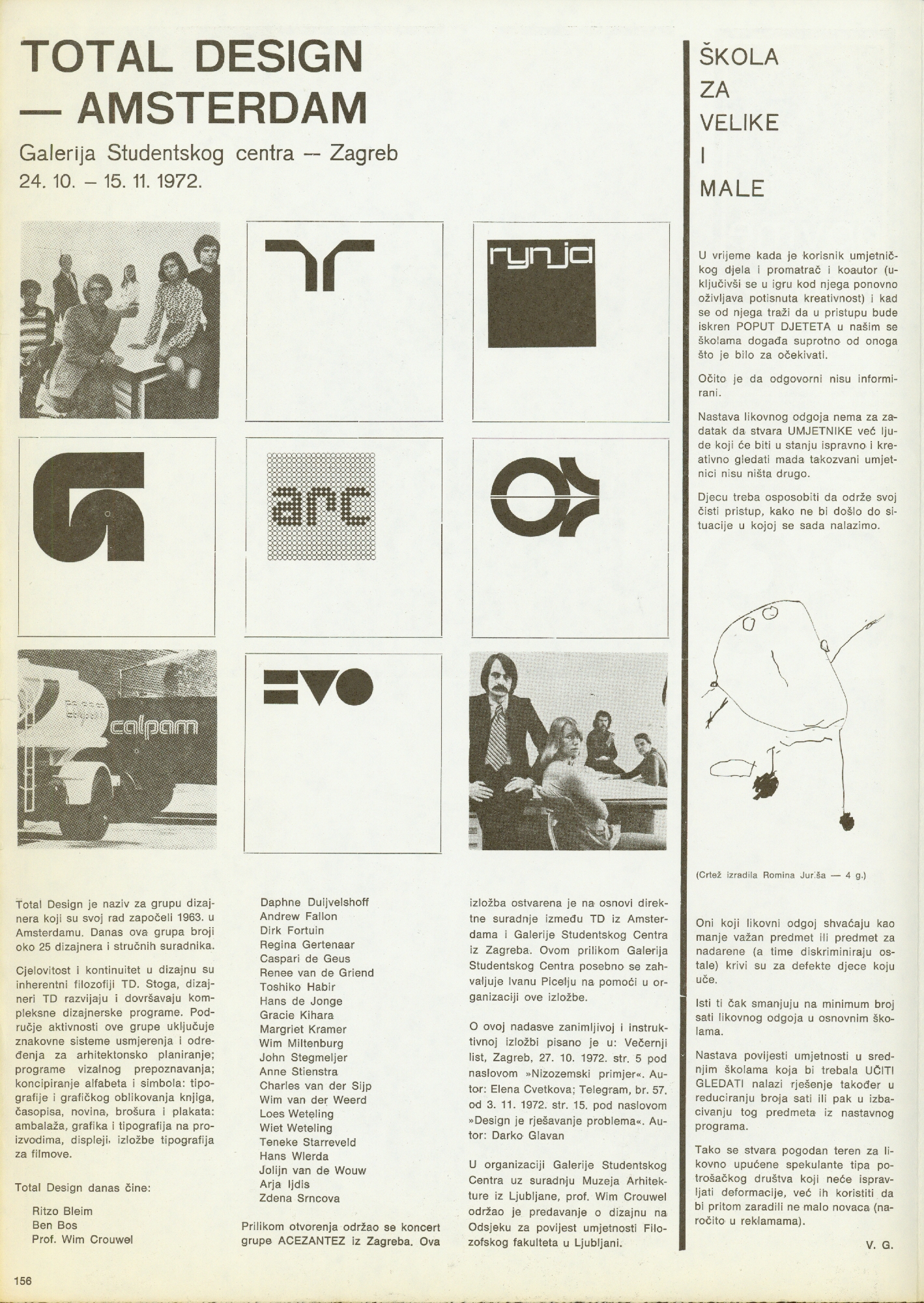 Dubravko Budić, grupa TOK, Petar Dabac, Želimir Koščević, Davor Lončarić, Vladimir Gudac, Romina Juriša, Angel Kalenberg, Nada Milisavljević, Dalibor Martinis; Aleksandar Srnec, Niki de Saint-Phalle, Slobodan Dimitrijević, Joseph Beuys, Total Design