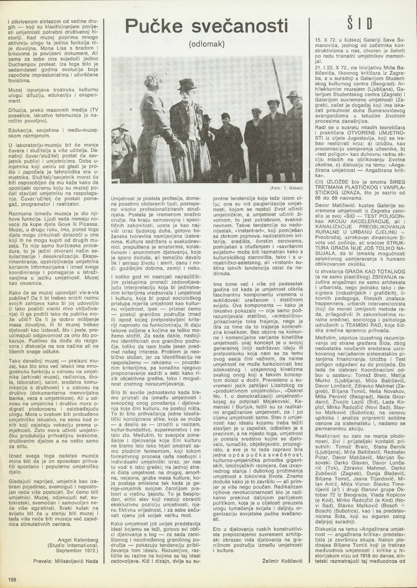 Dubravko Budić, grupa TOK, Petar Dabac, Želimir Koščević, Davor Lončarić, Vladimir Gudac, Romina Juriša, Angel Kalenberg, Nada Milisavljević, Dalibor Martinis; Aleksandar Srnec, Niki de Saint-Phalle, Slobodan Dimitrijević, Joseph Beuys, Total Design, Angel Kalenberg (prijevod Nada Milisavljević), Davor, Lončarić, Dalibor Martinis, Aleksandar Srnec