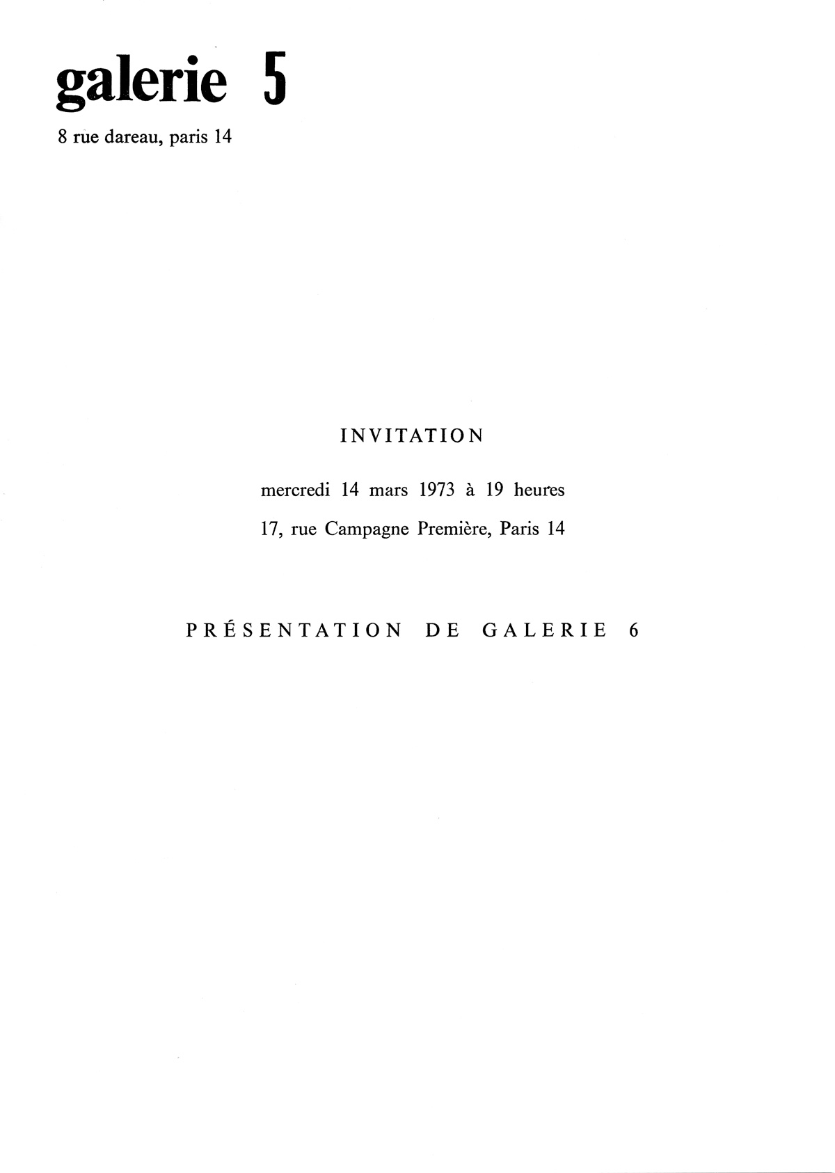 Documentation of Galerie 1-36 in Paris, Galerie 5 - Invitation