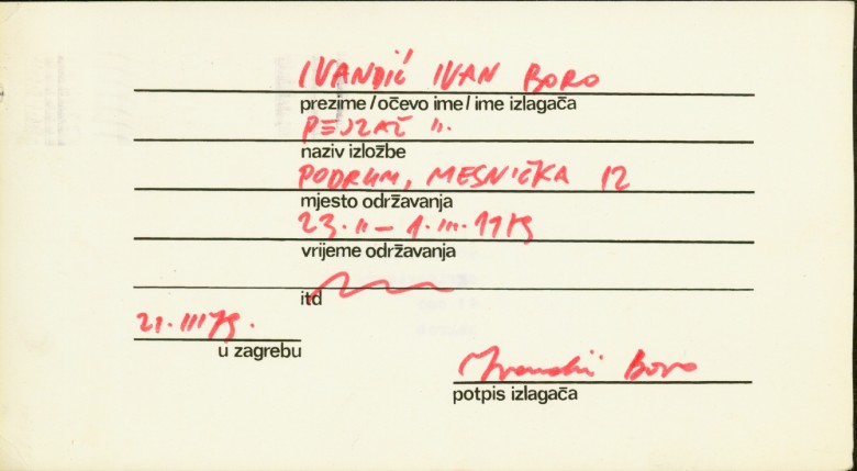 invitation for the exhibition of Boro Ivandić "Pejzaž II." at Podroom, Mesnička 12, Zagreb
