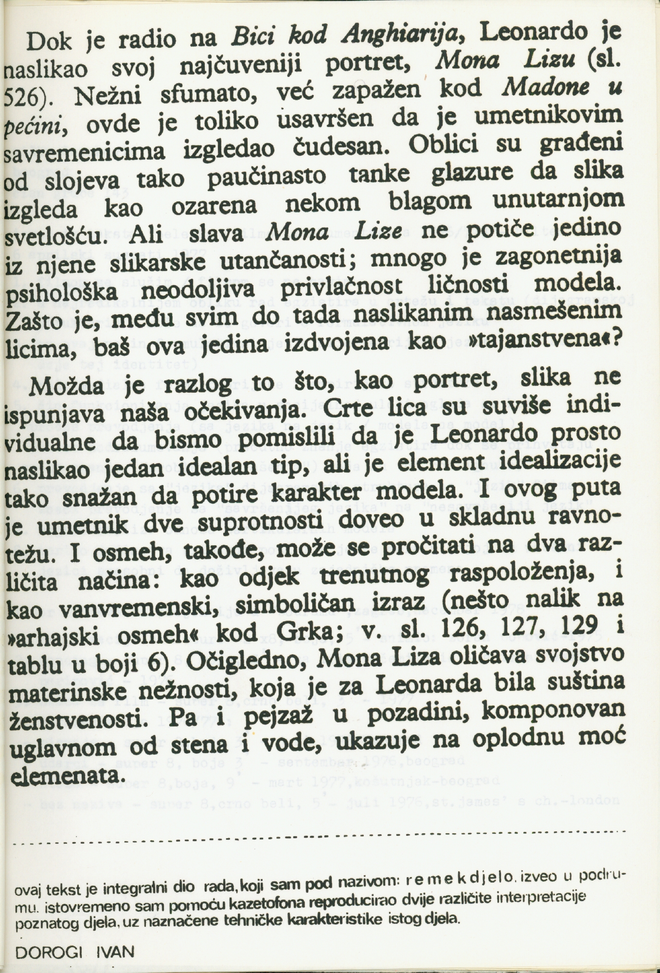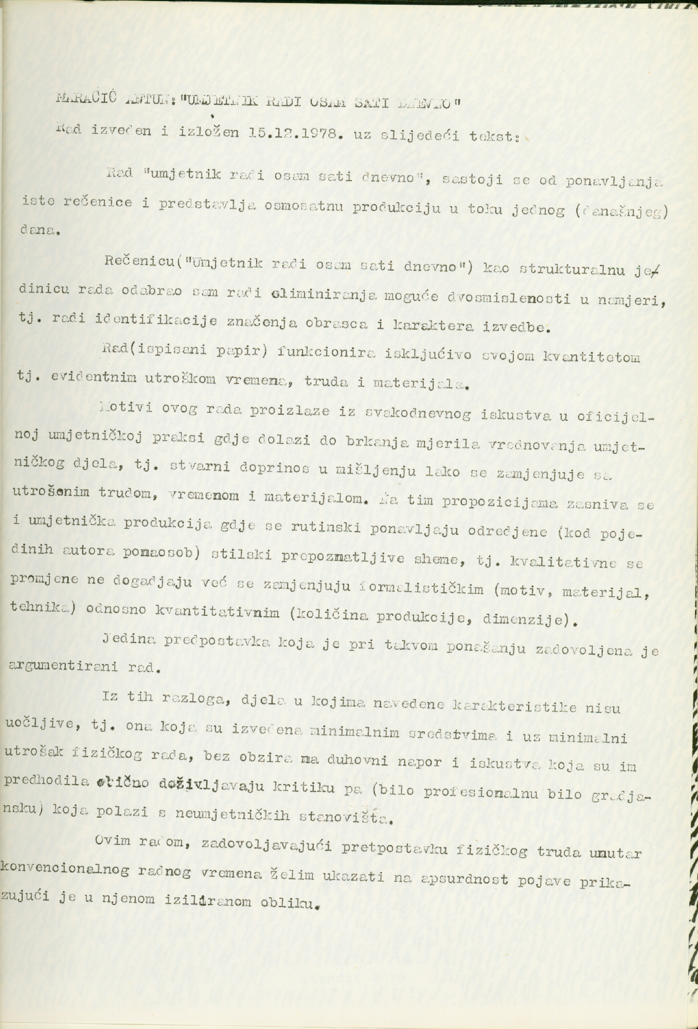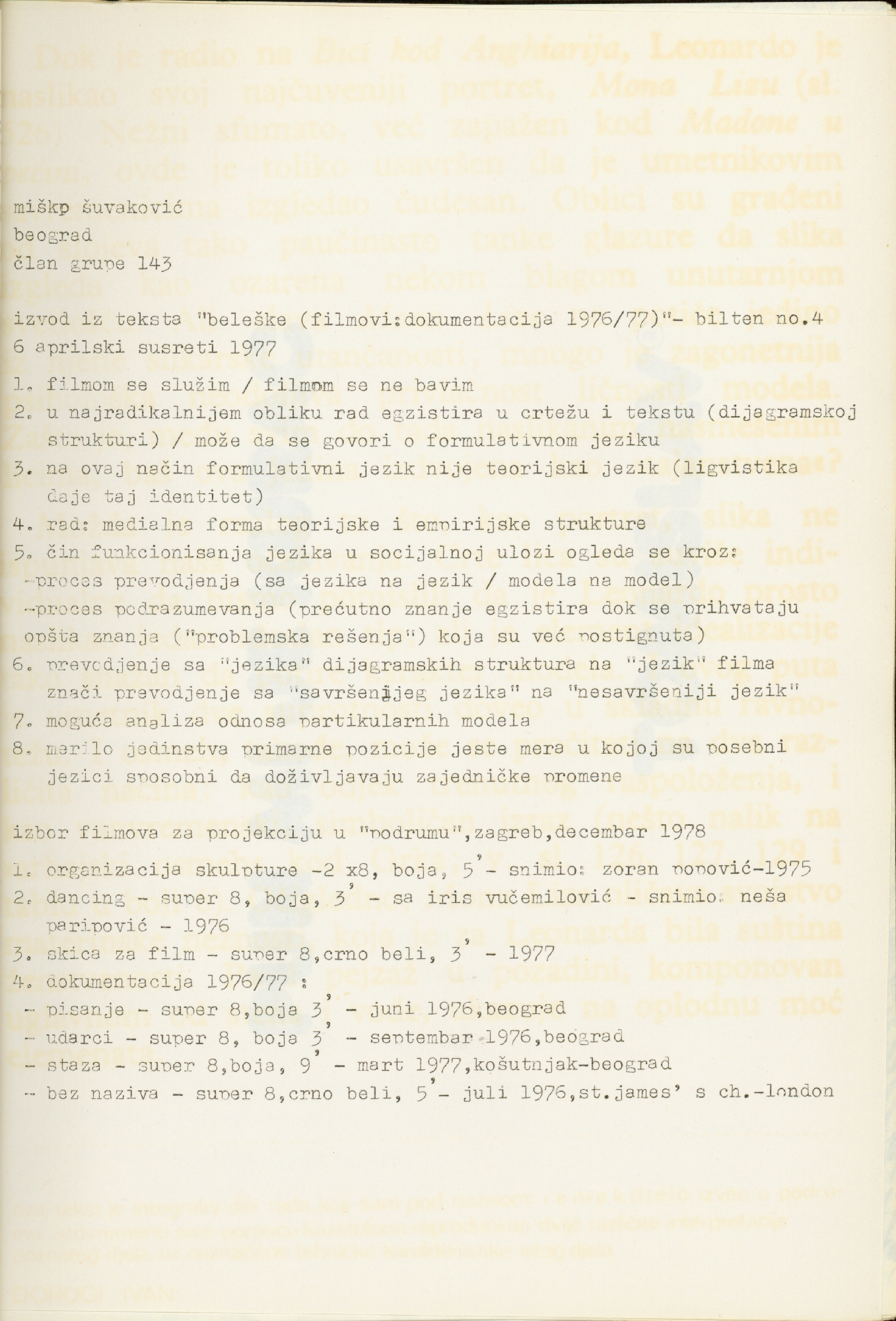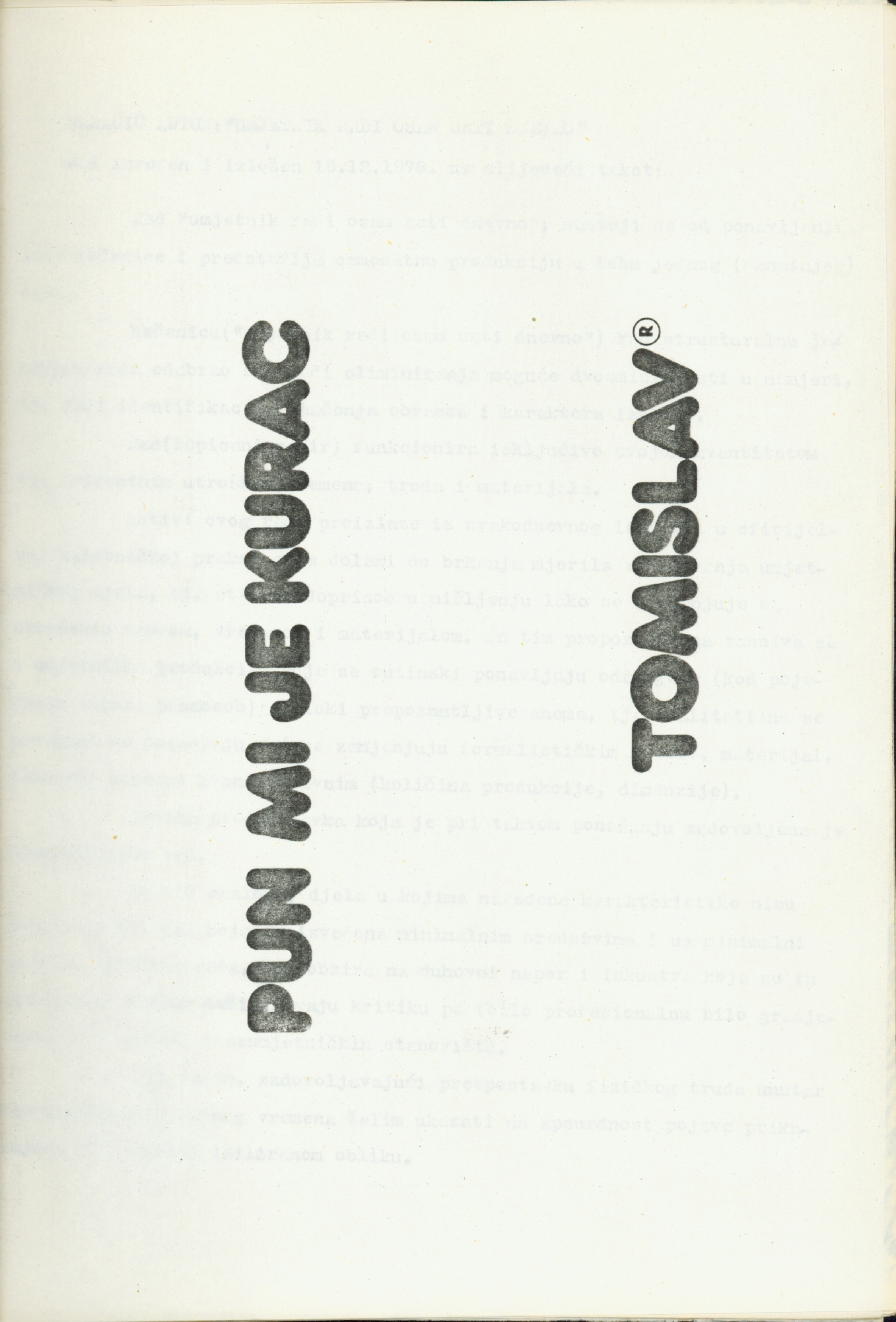 catalogue of the works in Podroom; Goran Petercol, Mangelos, Boris Demur, Željko Jerman, Vlado Martek, Fedor Vučemilović, Željko Kipke, Marijan Molnar, Raša Todosijević, Miško Šuvaković, Tomislav Gotovac, Antun Maračić, Ivan Dorogi, Boro Ivandić, Vladimir Dodig Trokut, Rajko Radovanović, Neša Paripović, Mladen Stilinović, Sven Stilinović