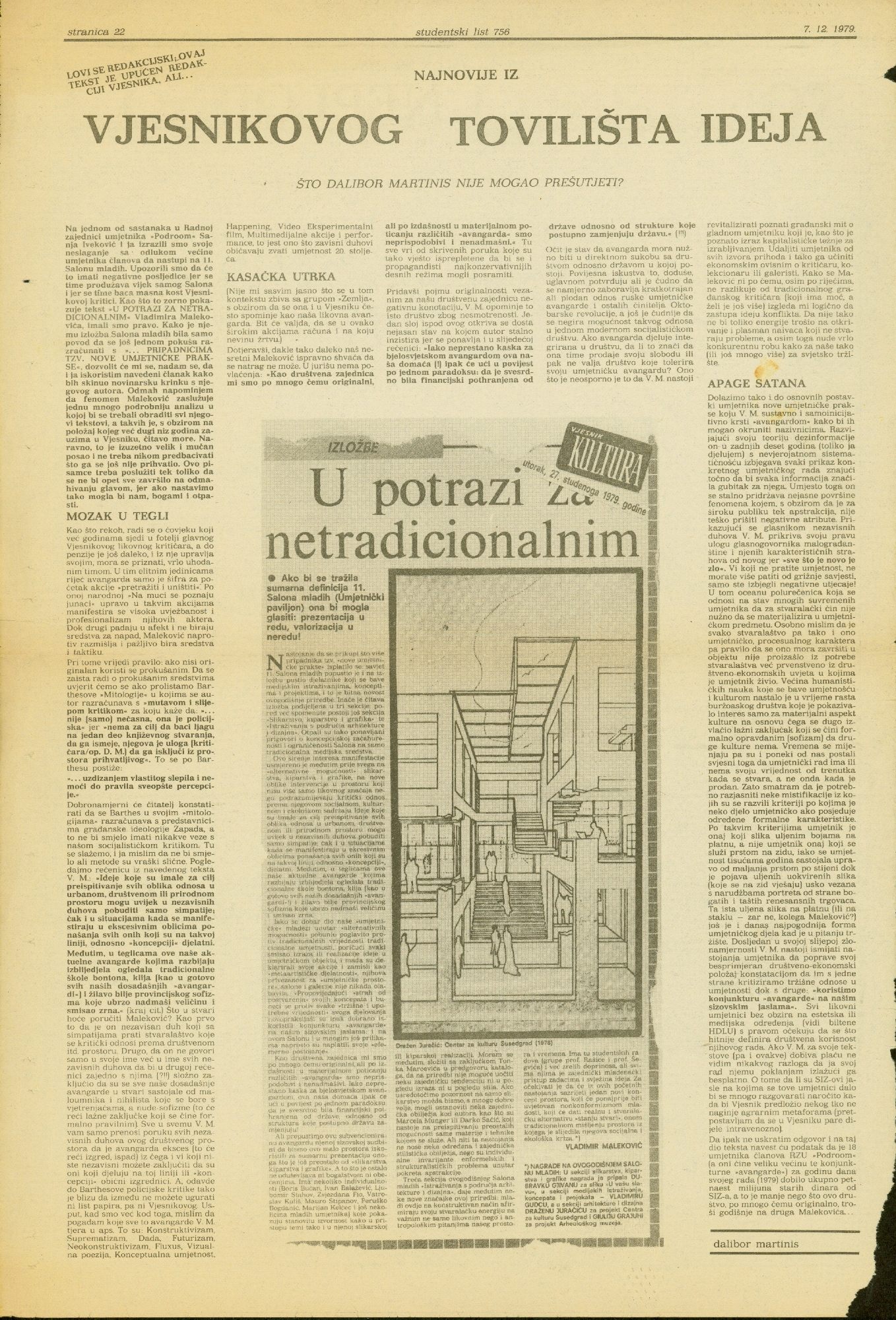 article in Studentski list no. 756 by Dalibor Martinis, page 22,