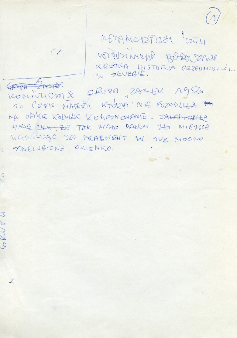 Włodzimierz Borowski's text "Metamorfozy, czyli krótka historia przedmiotu w służbie sztuce"