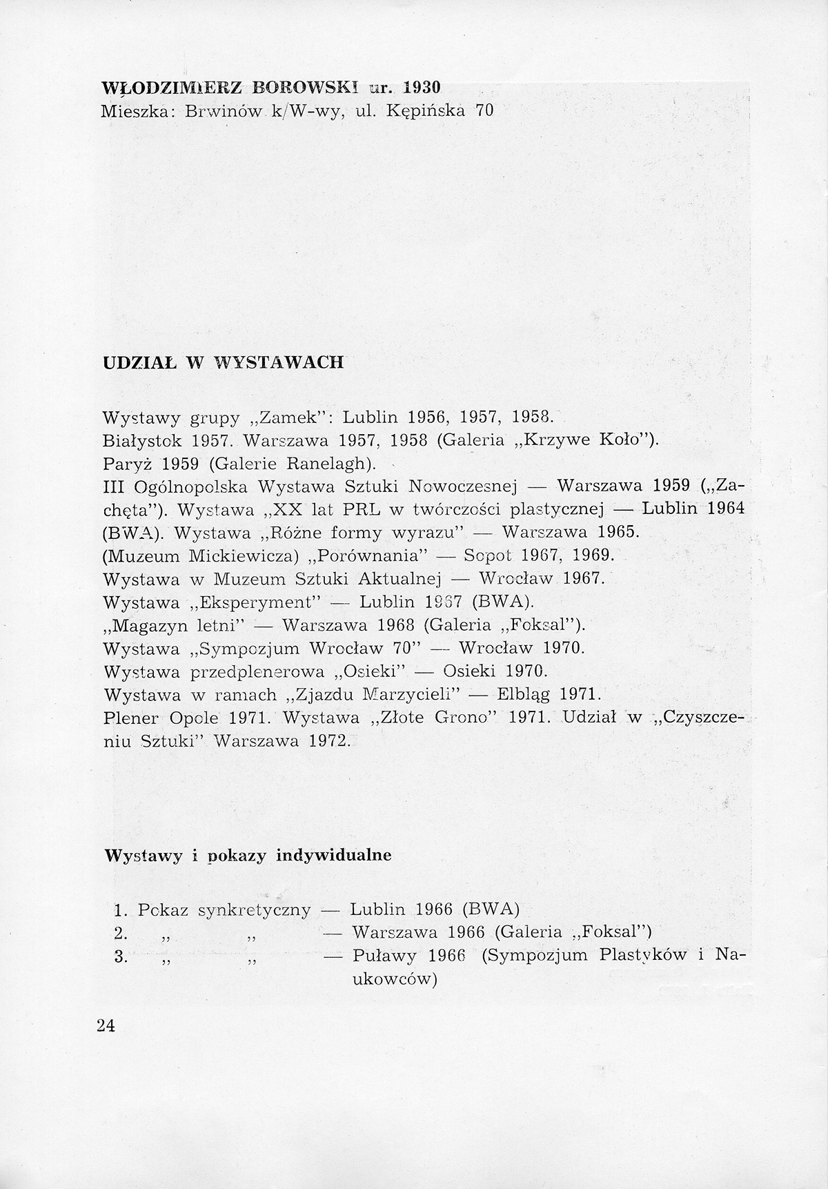 Włodzimierz Borowski' s exhibition „Playing Field”, Współczesna Gallery, Warsaw 1972.