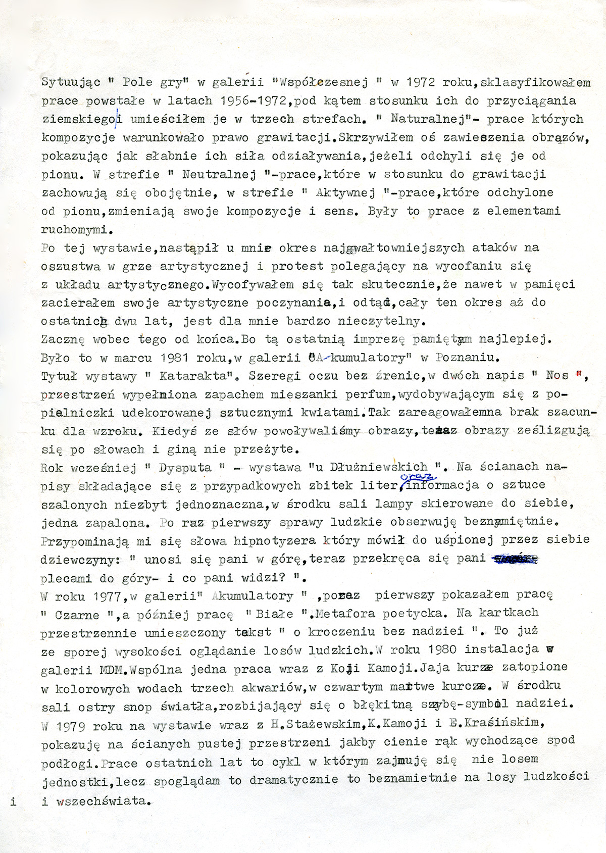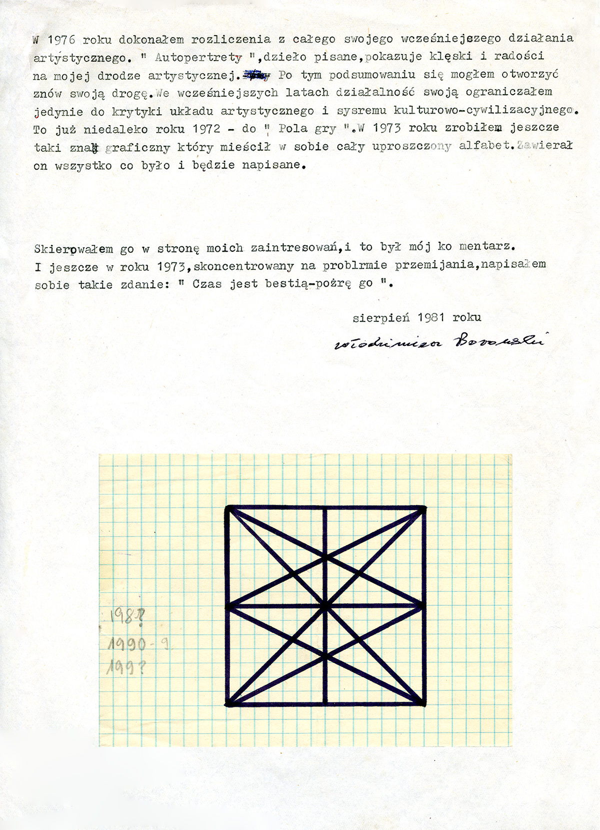 Tekst Włodzimierza Borowskiego do katalogu wystawy retrospektywnej w BWA Toruń, 1981 (wystawa nie odbyła się)