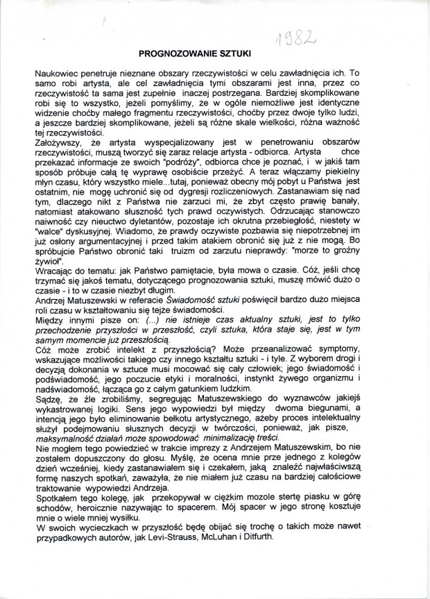 • Tekst Włodzimierza Borowskiego do katalogu wystawy retrospektywnej w BWA Toruń, 1981 (wystawa nie odbyła się)