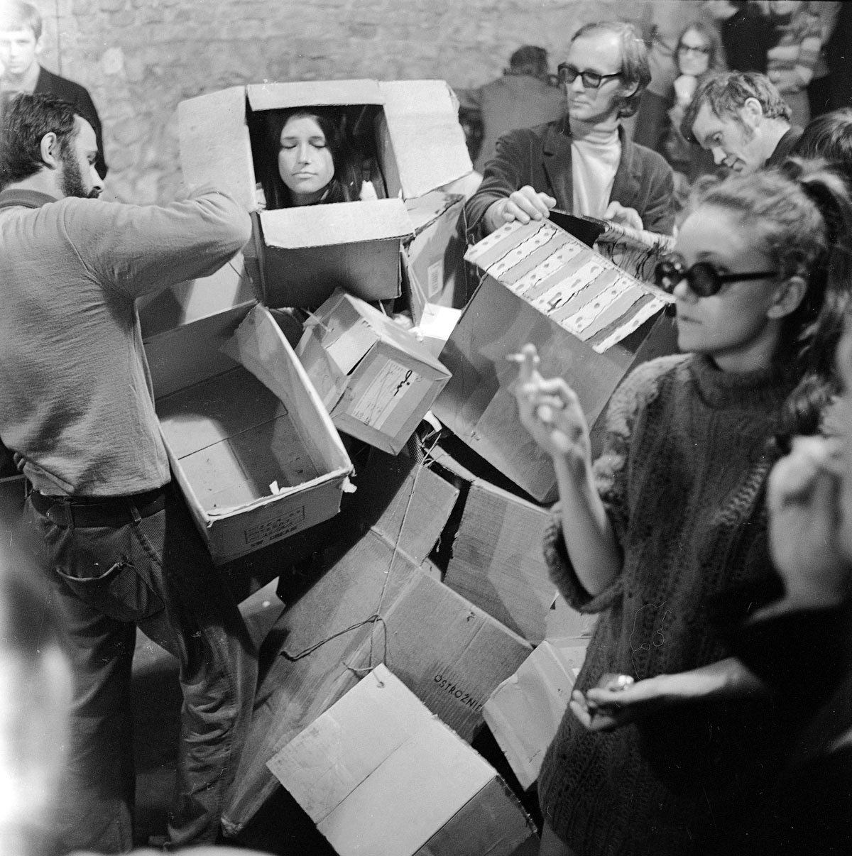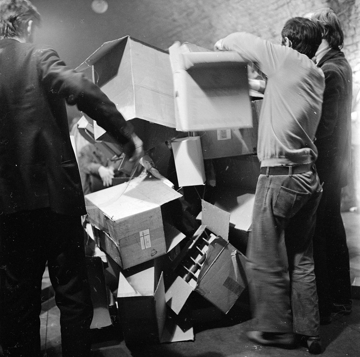 Eustachy Kossakowski's photographs of Lesław and Wacław Janicki's happening at the Krzysztofory Gallery, Krakow, 1969
