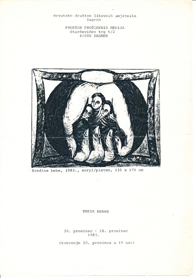 letak za izložbu Brede Beban u Galeriji Proširenih medija