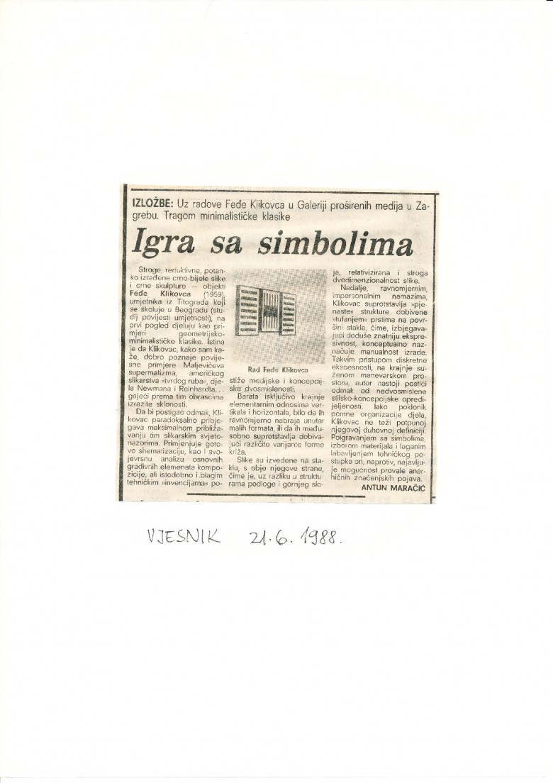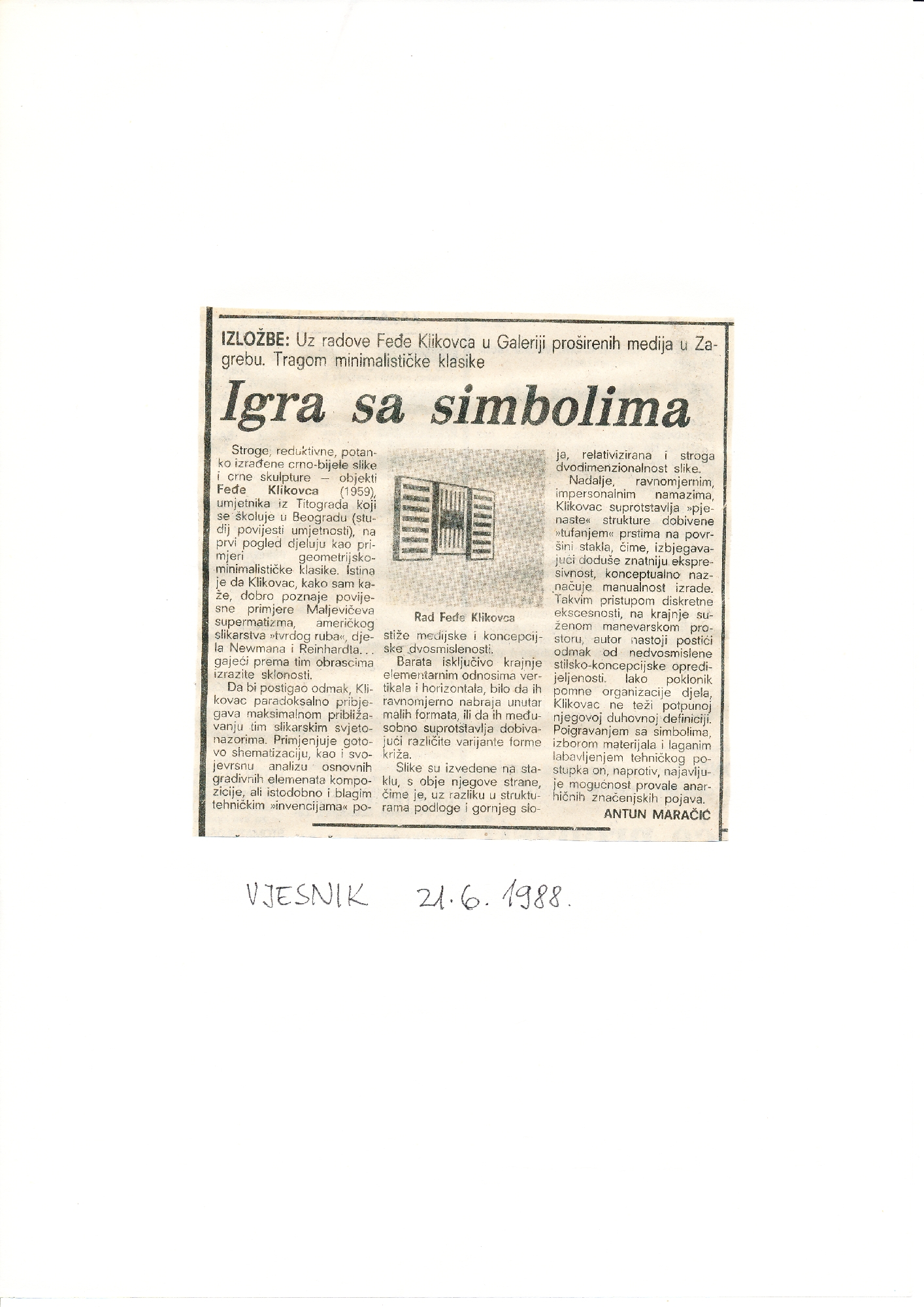 članak u Vjesniku u povodu izložbe Feđe Klikovca u Galeriji Proširenih medija