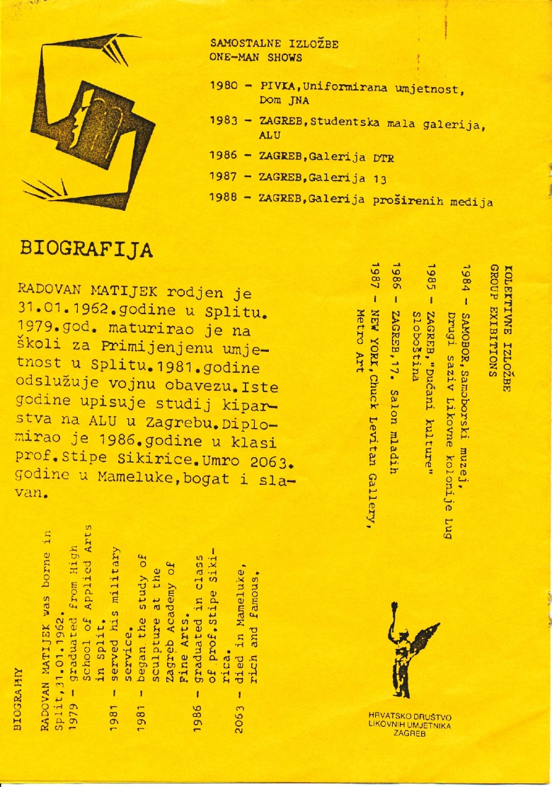 katalog izložbe "Reljefne slike" Radovana Matijeka u Galeriji Proširenih medija