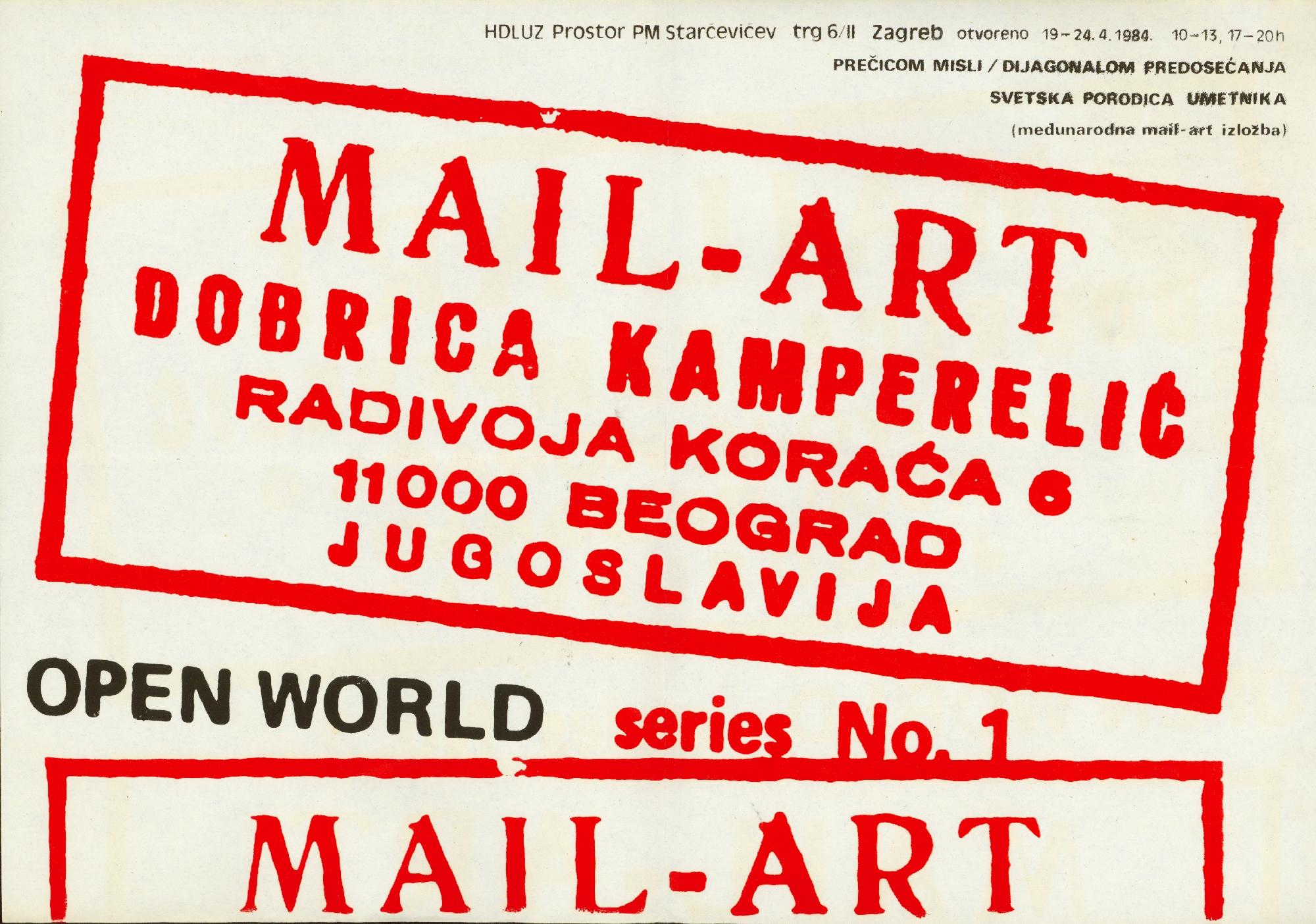poster za internacionalnu izložbu Svetska porodica umetnika i solo izložba "Prečicom misli / Dijagonalom predosjećanja" Dobrice Kamperelić