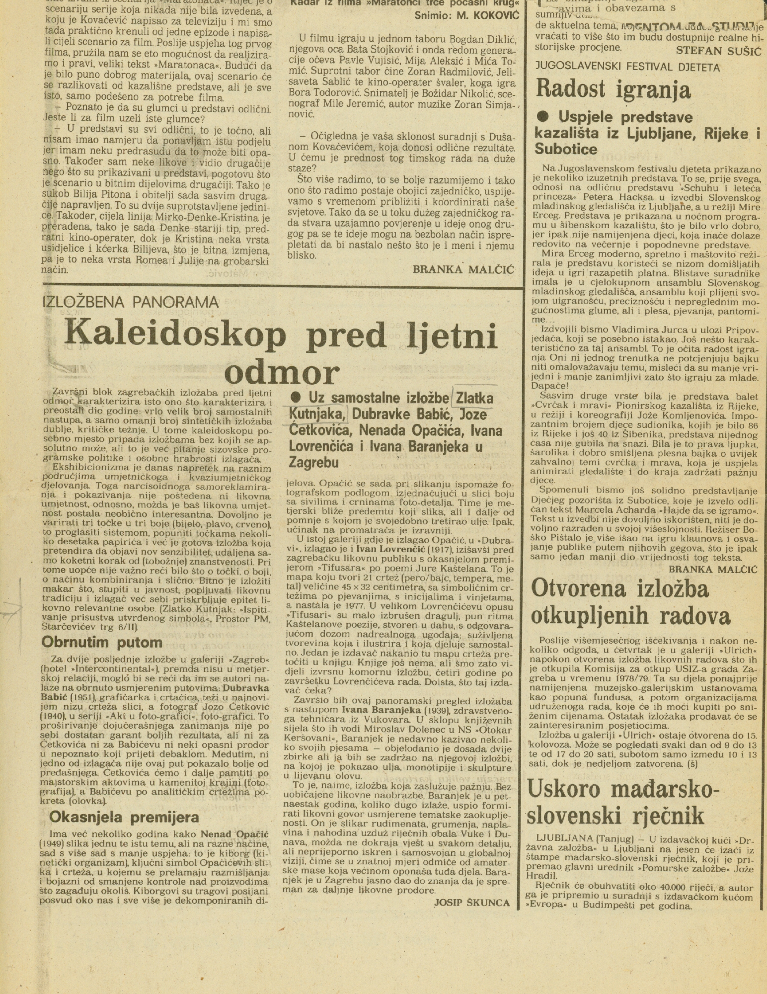 članak "Kaleidoskop pred ljetni odmor" Josipa Škunca