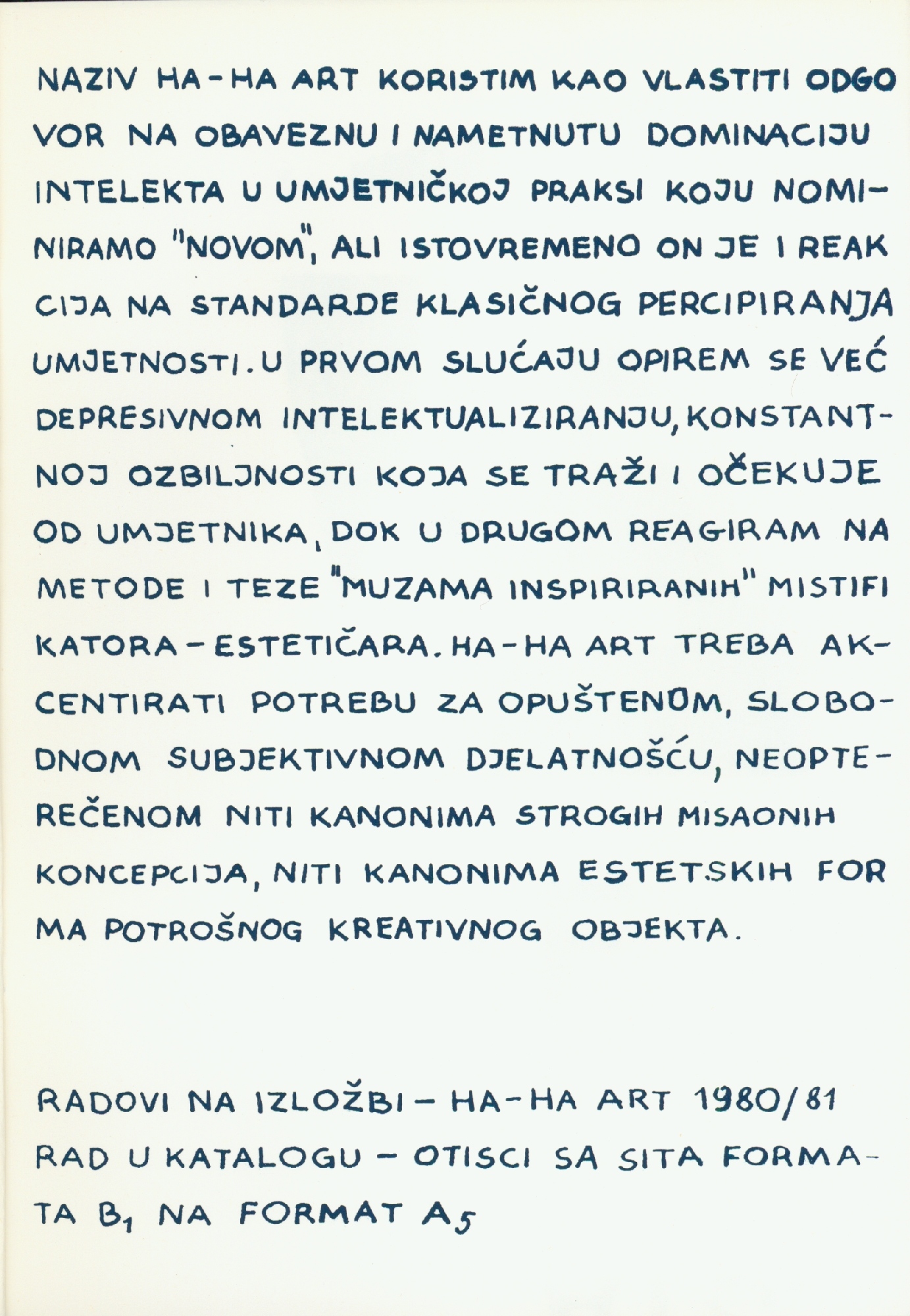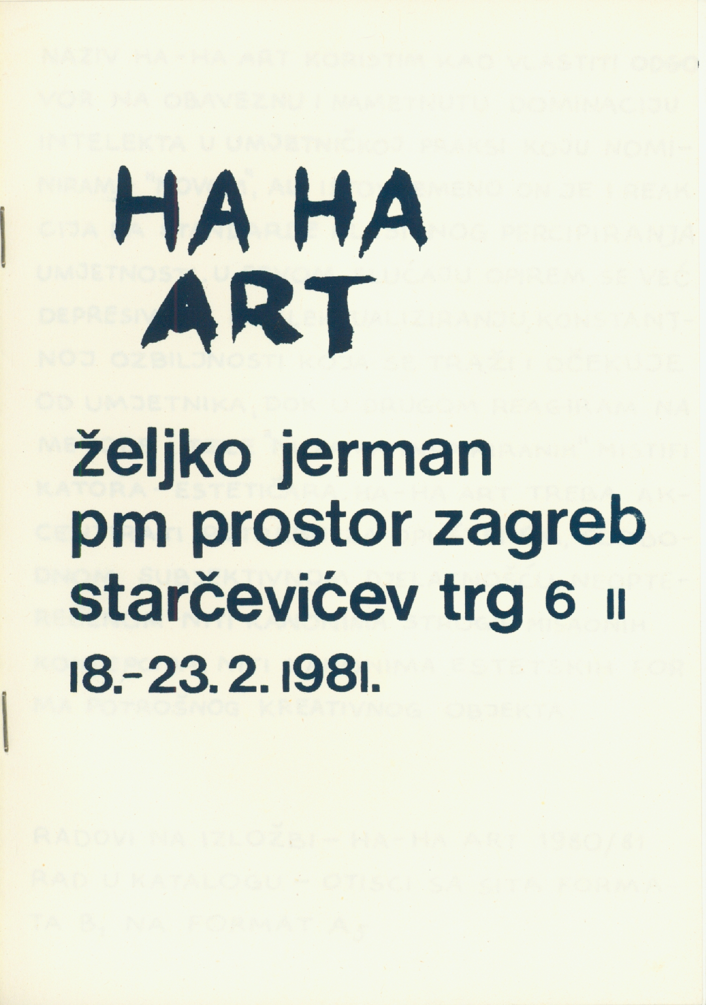 katalog izložbe "Ha -ha Art" Željka Jermana u PM