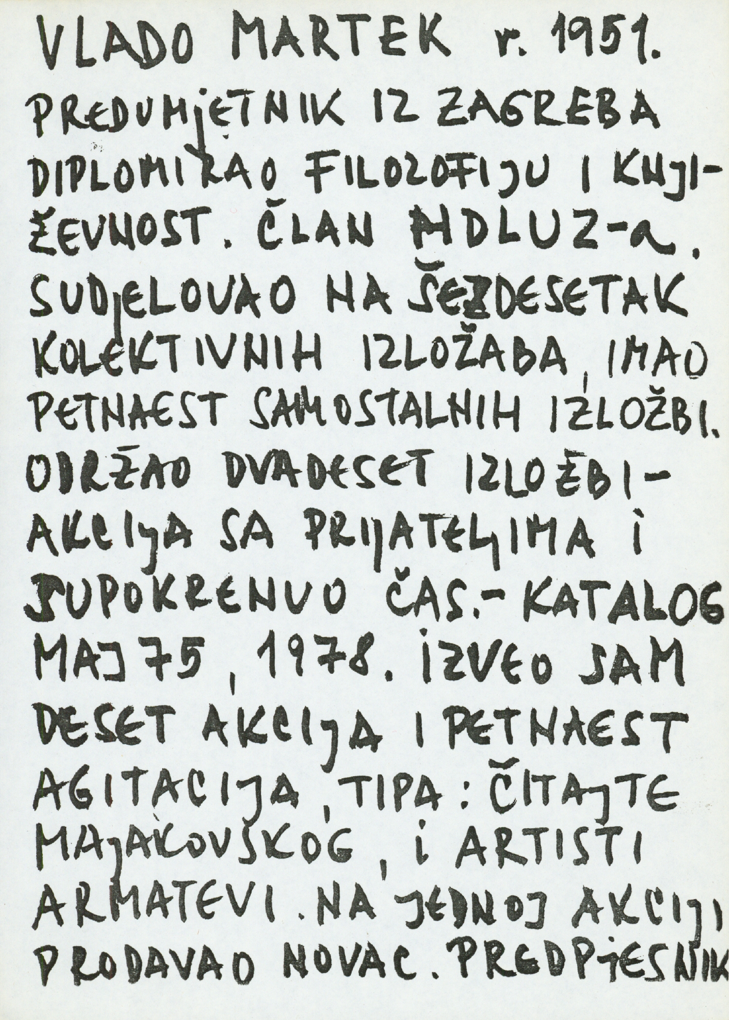 Akcent, broj 11, izdavač: Galerija studentskog centra, Savska 23, 41000 Zagreb; izdanje realizirali Boris Demur i Vlado Martek u povodu izložbe i akcije u Galeriji SC