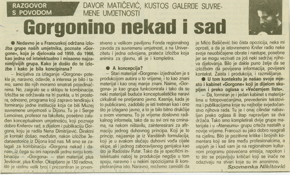 članak "Gorgonino nekad i sad" Spomenke Nikitović u Večernjem listu