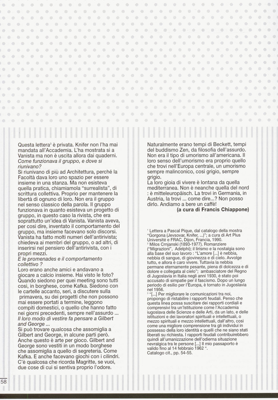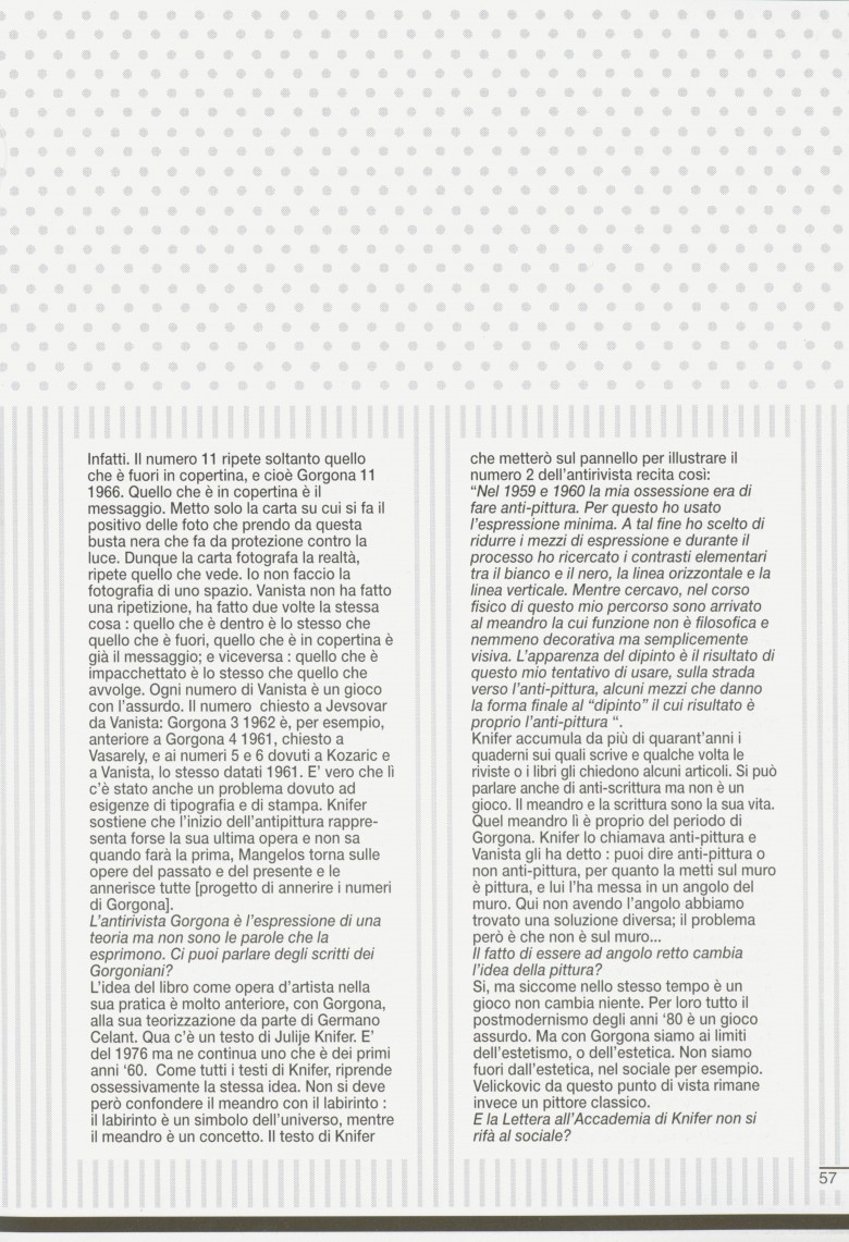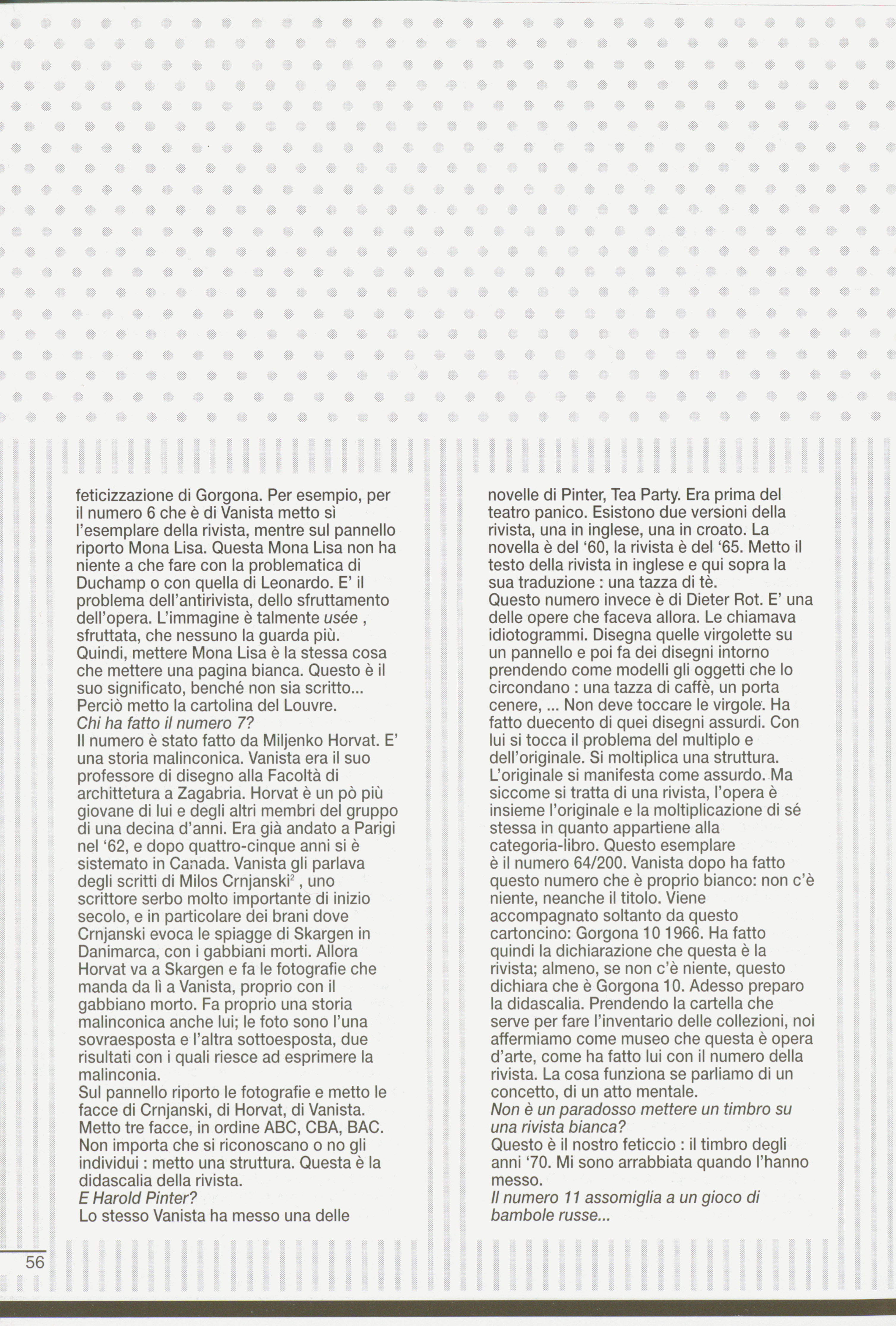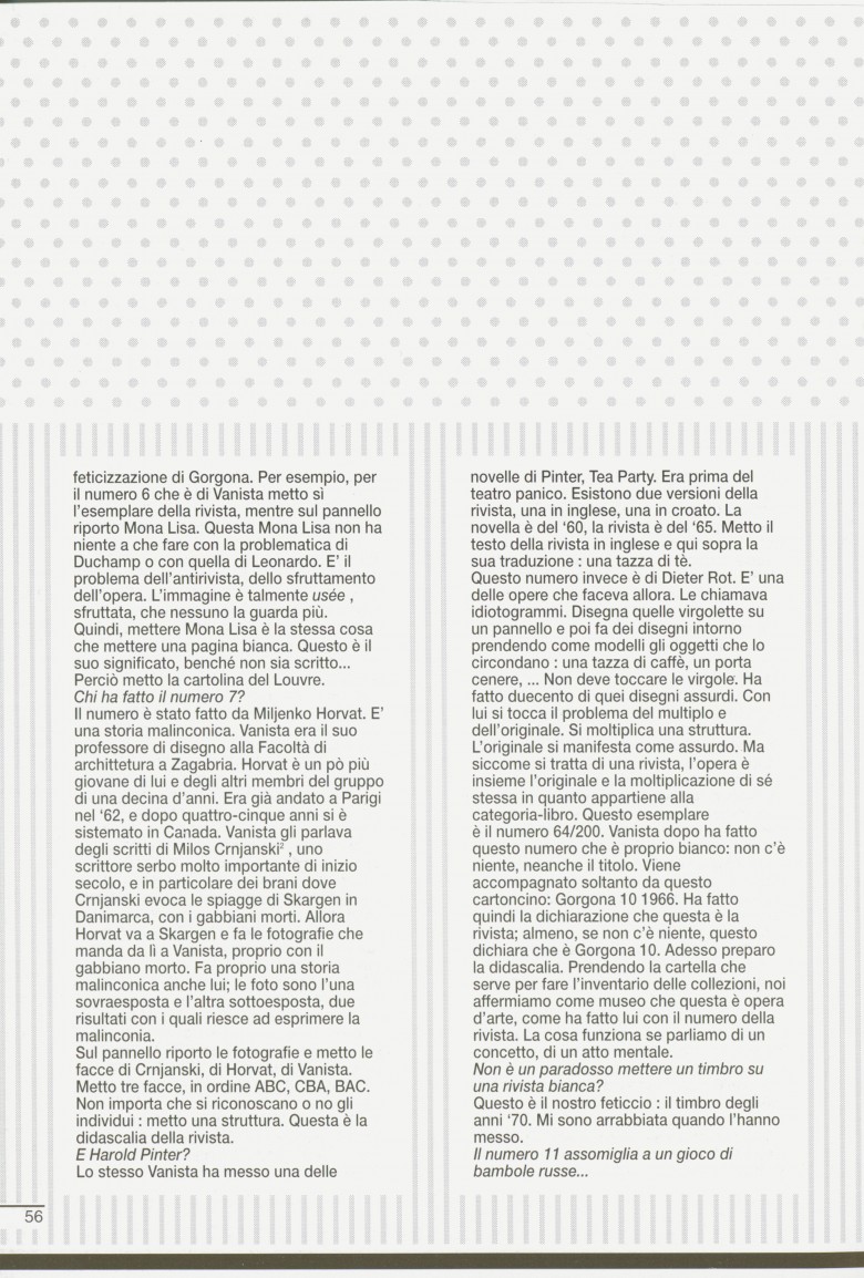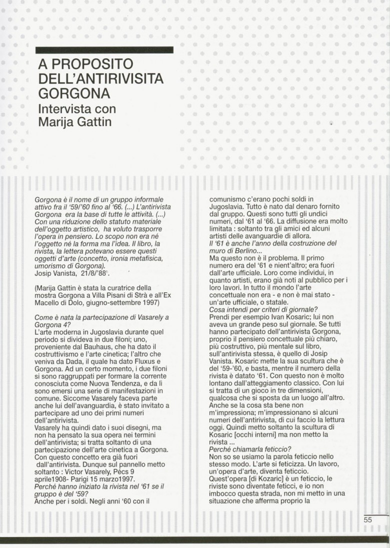 tekst "A proposito dell'antirivisita Gorgona" Francisa Chiapponea i Marije Gattin iz kataloga izložbe "Biennale in riviera" (La scuola incontra l'arte contemporanea), stranice 55,56,57,58