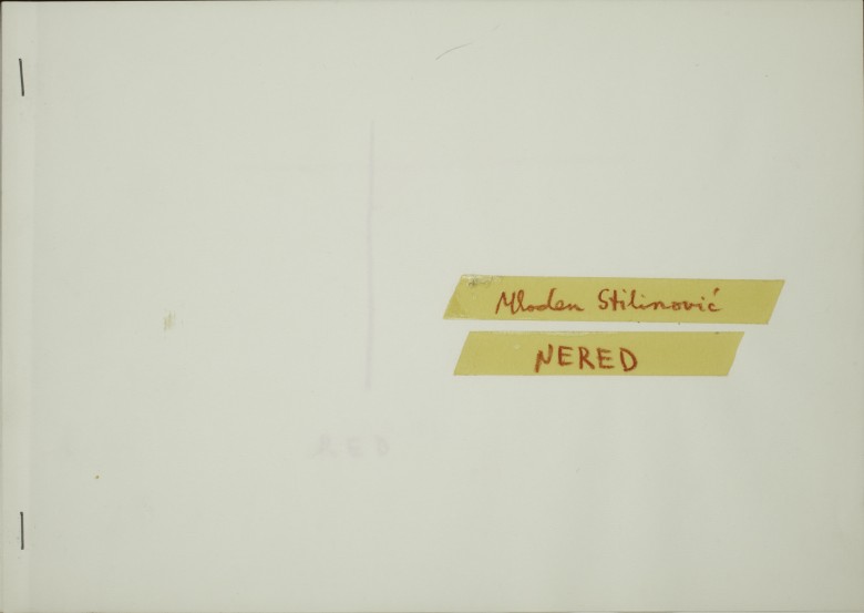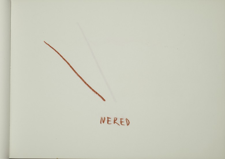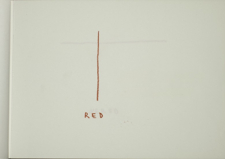 kombinirana tehnika (crvena kreda, ljepliva traka / papir)