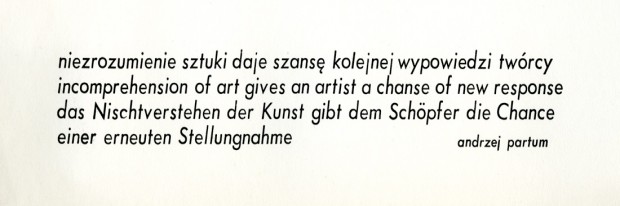 „Niezrozumienie sztuki daje szansę kolejnej wypowiedzi twórcy” (Zdanie zaczerpnięte z „Manifestu sztuki bezczelnej” Andrzeja Partuma 1977 (punkt 9))