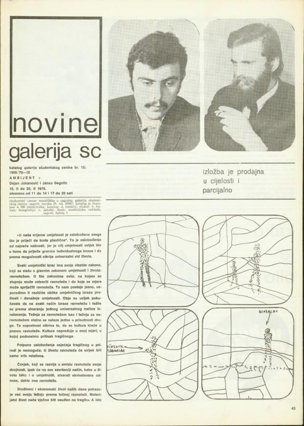 University Student Centre, Student Centre Gallery, Zagreb, Savska 25; poster: B. Bućan; catalogue ue: D. Tomičić; photography: V. Jakolić; 500 copies printed; press: Medicinska naklada, Zagreb, Šalata 3; Dejan Jokanović, Janez Segolin, Lev Nusberg