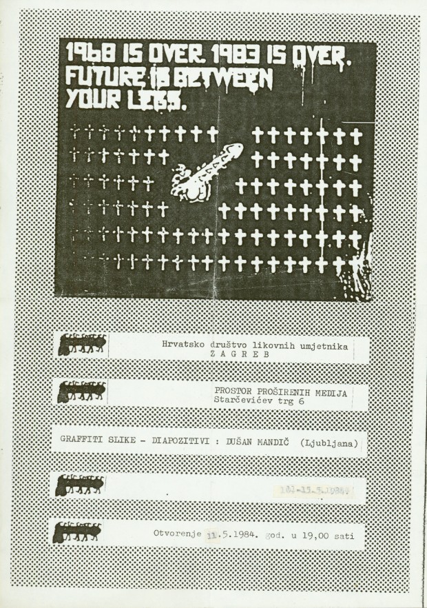 flyer for the exhibition "Graffiti slike - dijapozitivi" of Dušan Mandič in PM