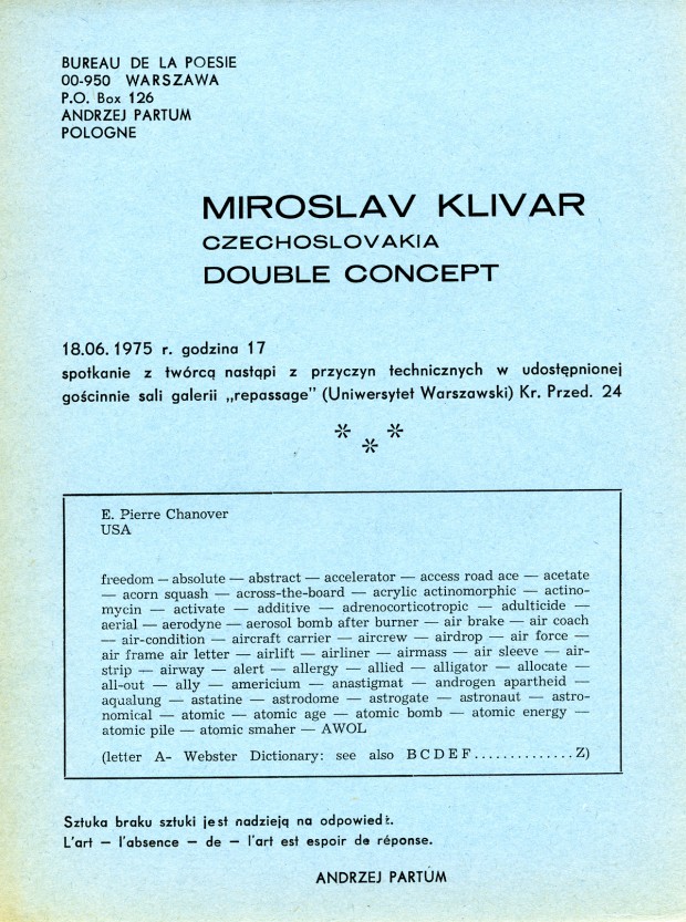 Andrzej Partum, Biuro Poezji, Galeria Repassage, Miroslav Klivar