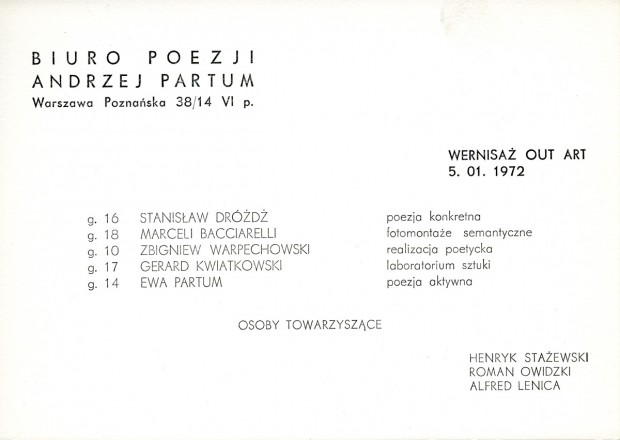 Biuro Poezji - zaproszenie na wernisaż, 1972 -