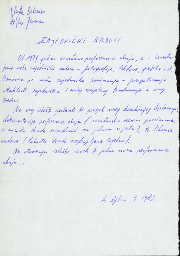 proposal for the exhibition in PM; exhibiton of Delimar and Jerman