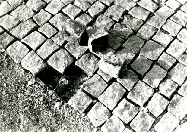• David Nez draws Andraž Šalamuns shadow on the ground, 1968