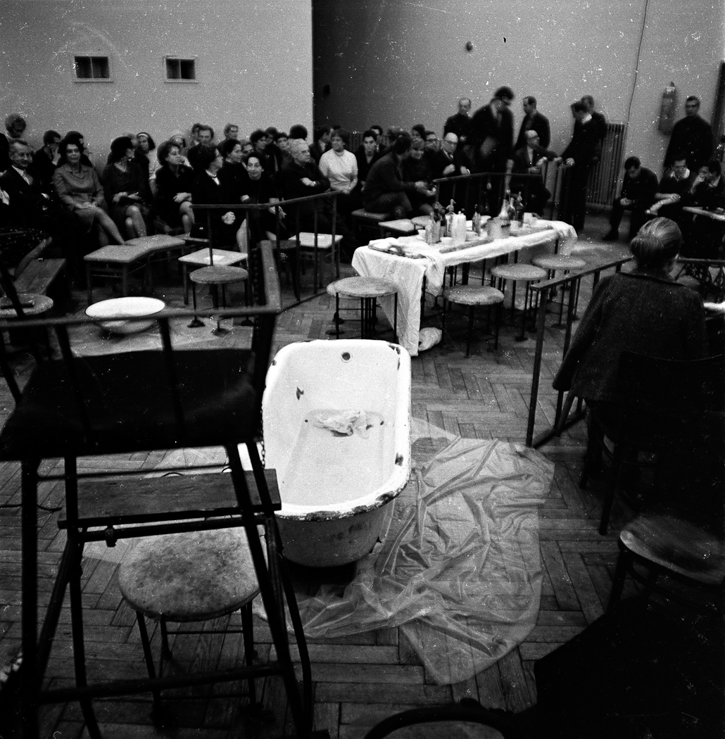 Happening Tadeusza Kantora "Kurka wodna", Warszawa, 1968 (fotografie Eustachego Kossakowskiego)