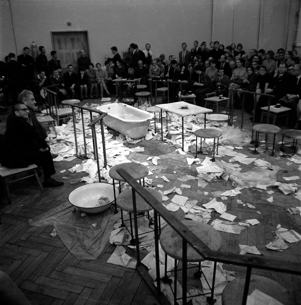 Happening Tadeusza Kantora "Kurka wodna", Warszawa, 1968 (fotografie Eustachego Kossakowskiego)