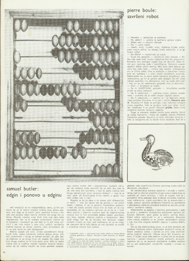 University Student Centre, Student Centre Gallery, Zagreb, Savska 25; poster and catalogue ue: Tomičić; press: grafički školski centar; 700 copies printed; D'Alambert, Jonathan Swift, Samuel Butler, Pierre Boule, Fred Hoyle, Enzo Paci