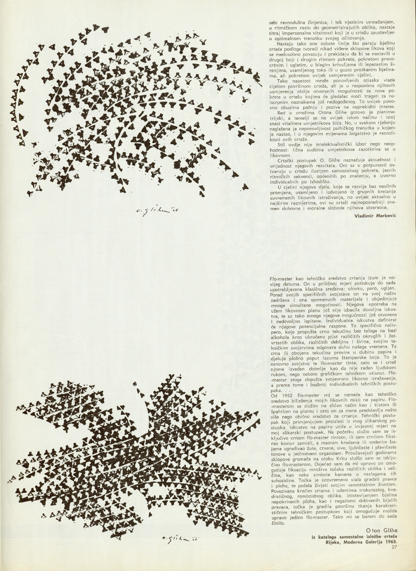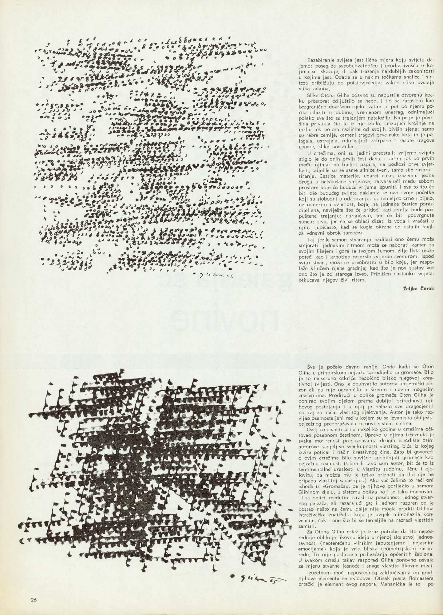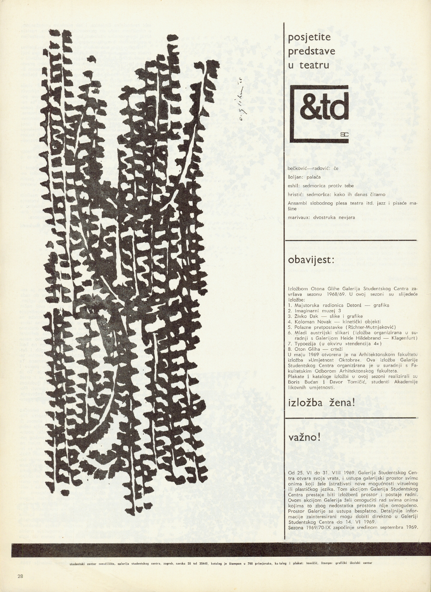 University Student Centre, Student Centre Gallery, Zagreb, Savska 25; poster and catalogue ue: Tomičić; press: grafički školski centar; 700 copies printed; Želimir Koščević, Oton Gliha, Željka Čorak, Vladimir Marković