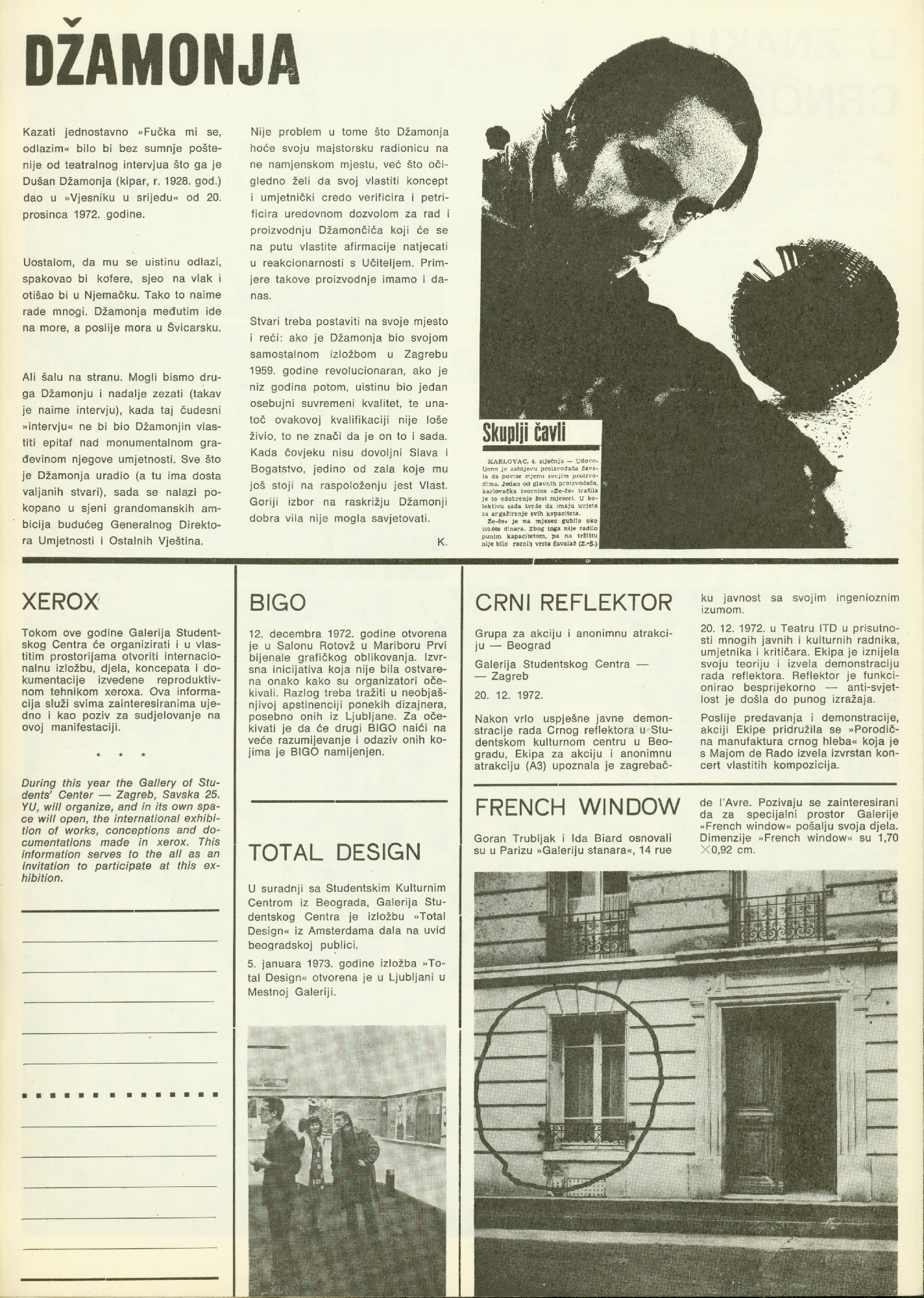 messages from the Student Centre Gallery; Dušan Džamonja, Total Design, Galerija stanara