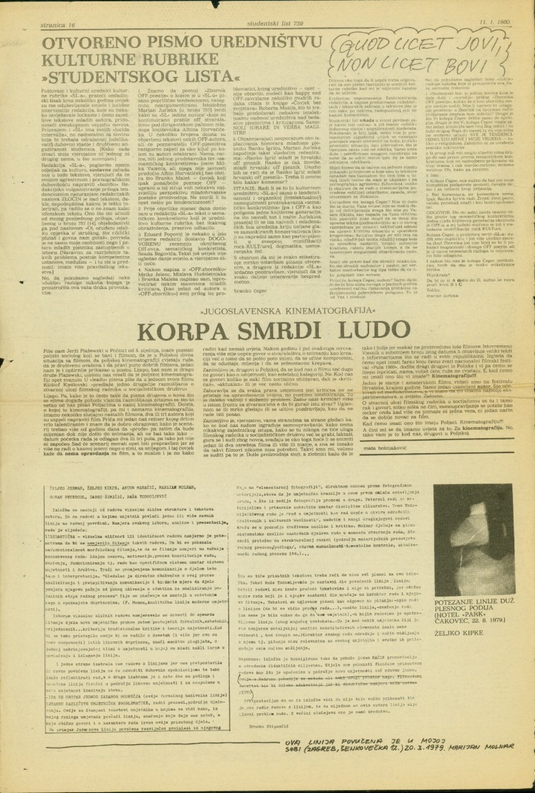 Article in Studentski list no. 759 by Branka Stipančić, page 16; Željko Jerman, Željko Kipke, Antun Maračić, Goran Petercol, Marijan Molnar, Darko Šimičić, Raša Todosijević
