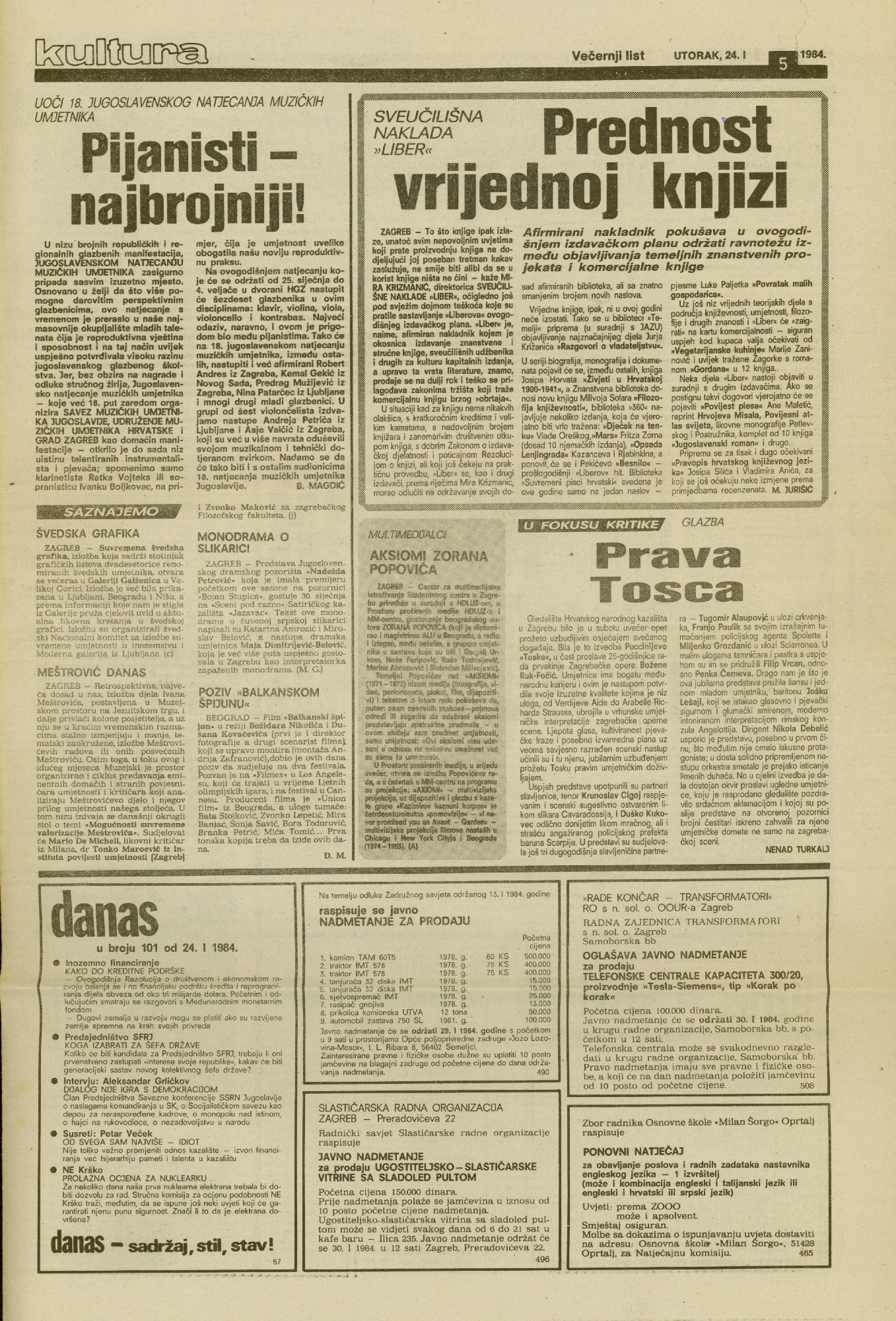 article "Aksiomi Zorana Popovića" in Večernji list, page 5