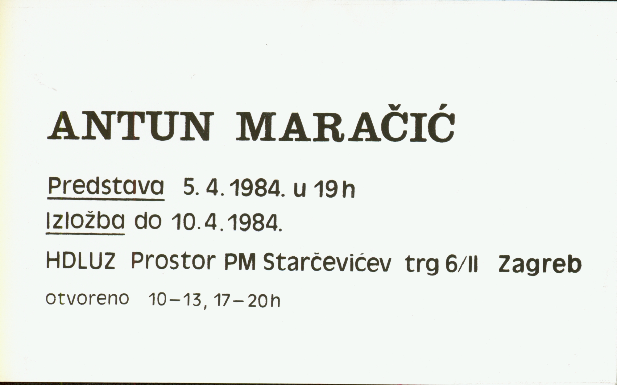 invitation card for the exhibition of Antun Maračić in PM