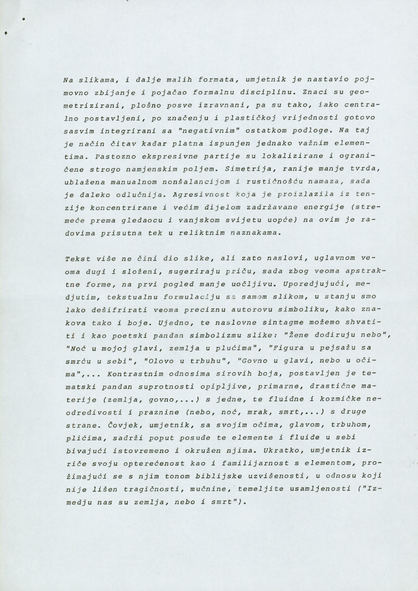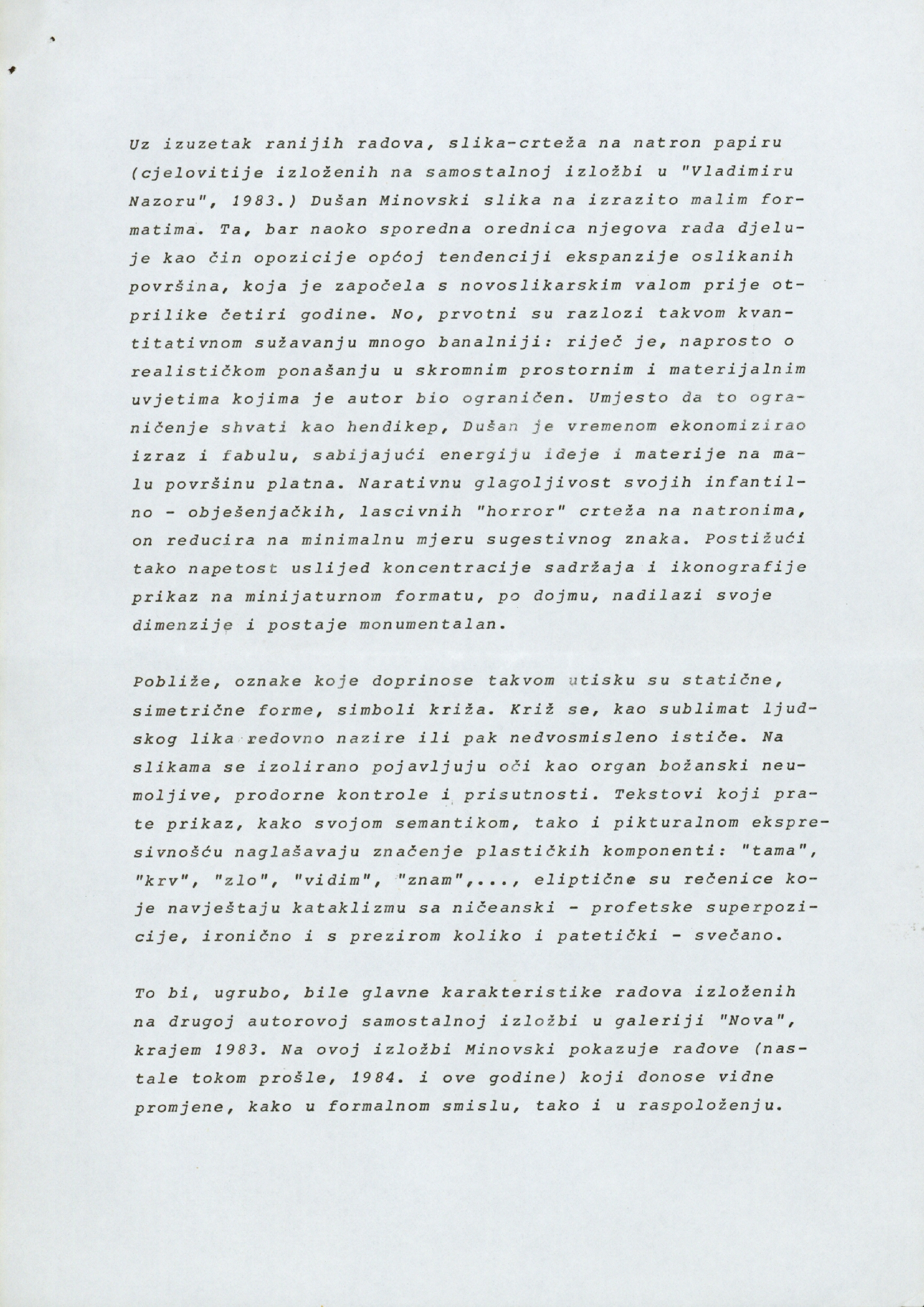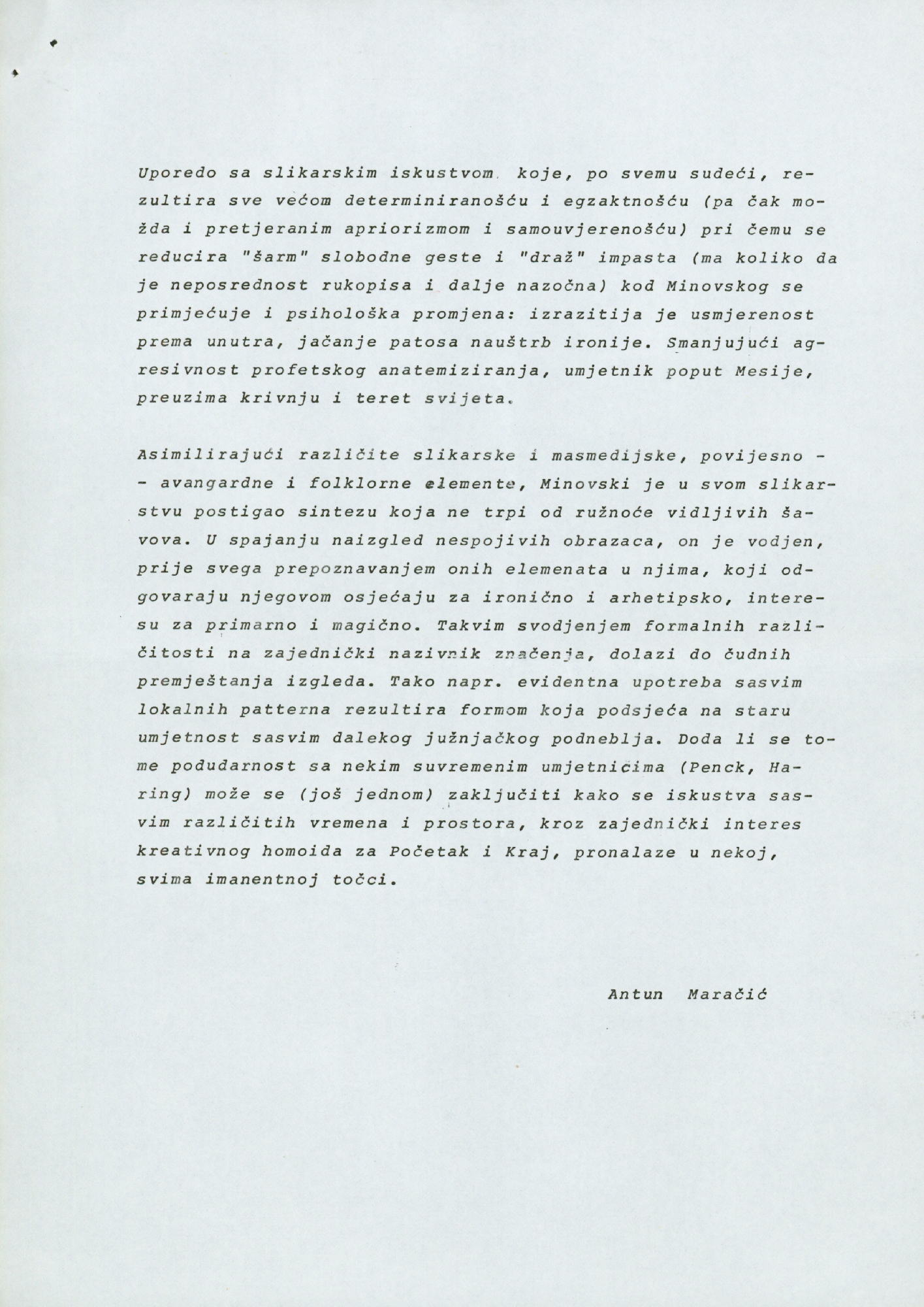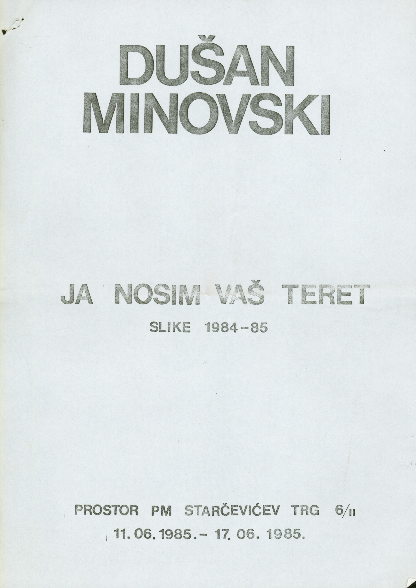 catalogue of the exhibition "Ja nosim vaš teret" of Dušan Minovski in PM; text by Antun Maračić