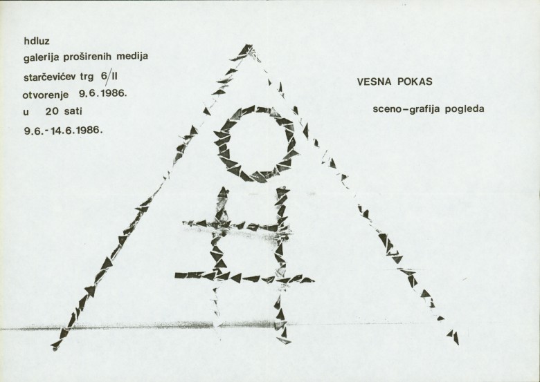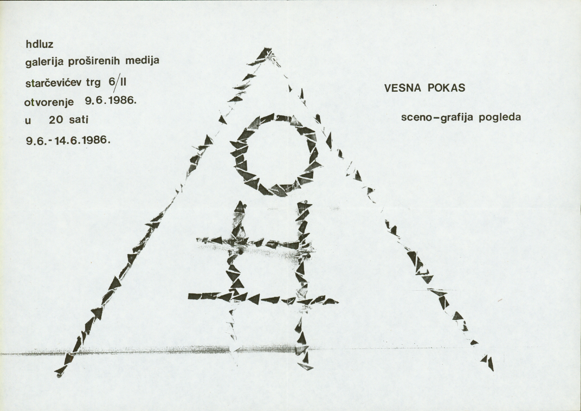 flyer for the exhibition "Sceno-grafija pogleda" of Vesna Pokas in PM