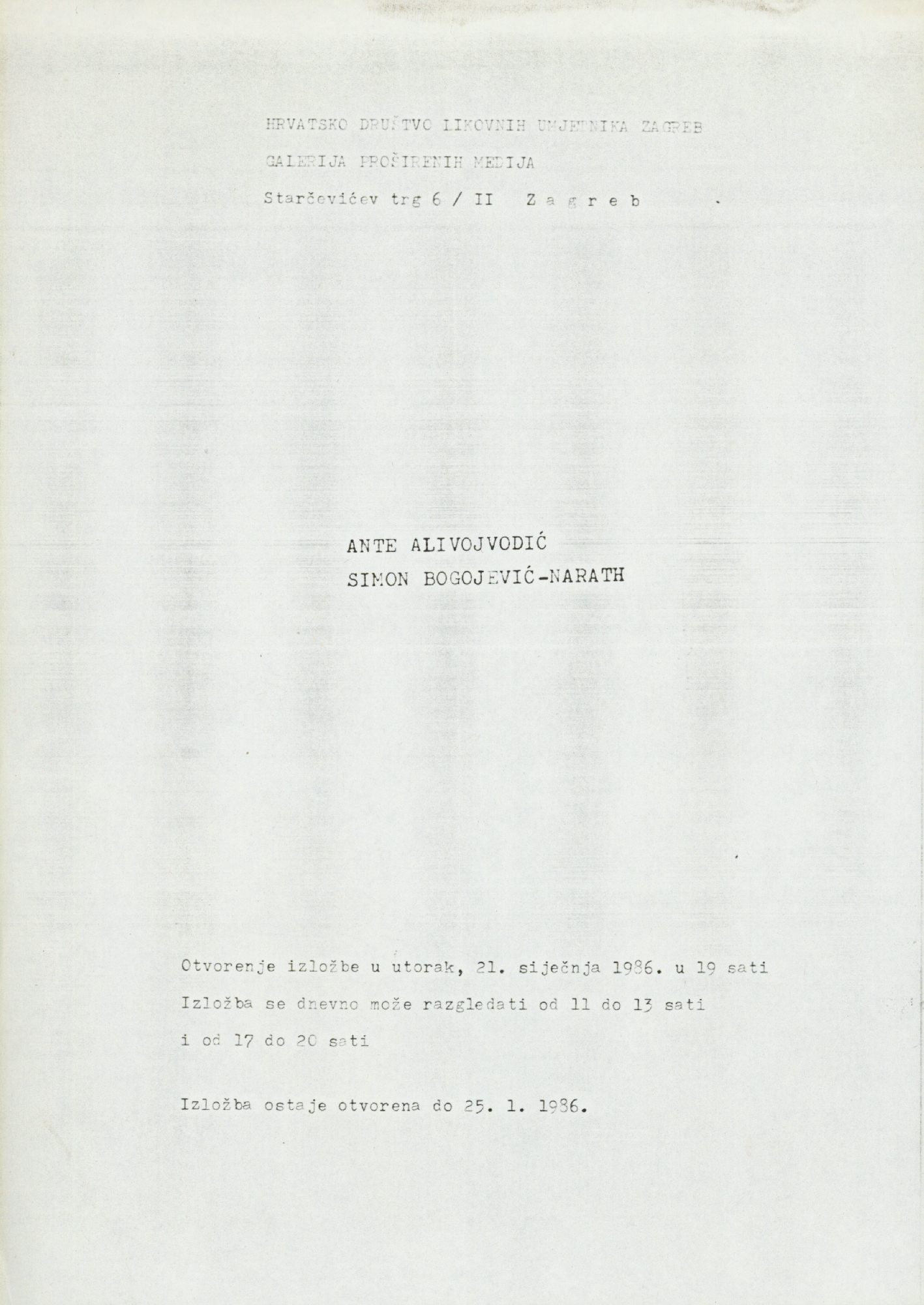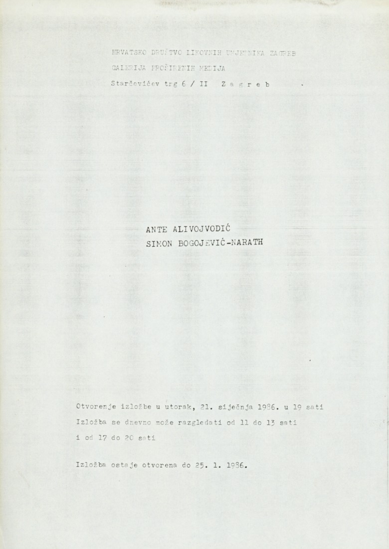 flyer of the exhibition of Ante Alivojvodić and Simon Bogojević-Narath in PM