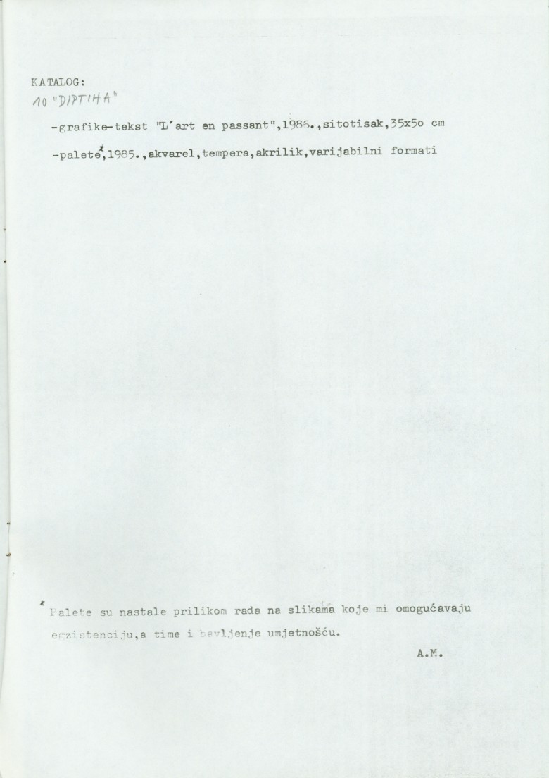 catalogue of the exhibition "L'art en passant" of Antun Maračić in PM