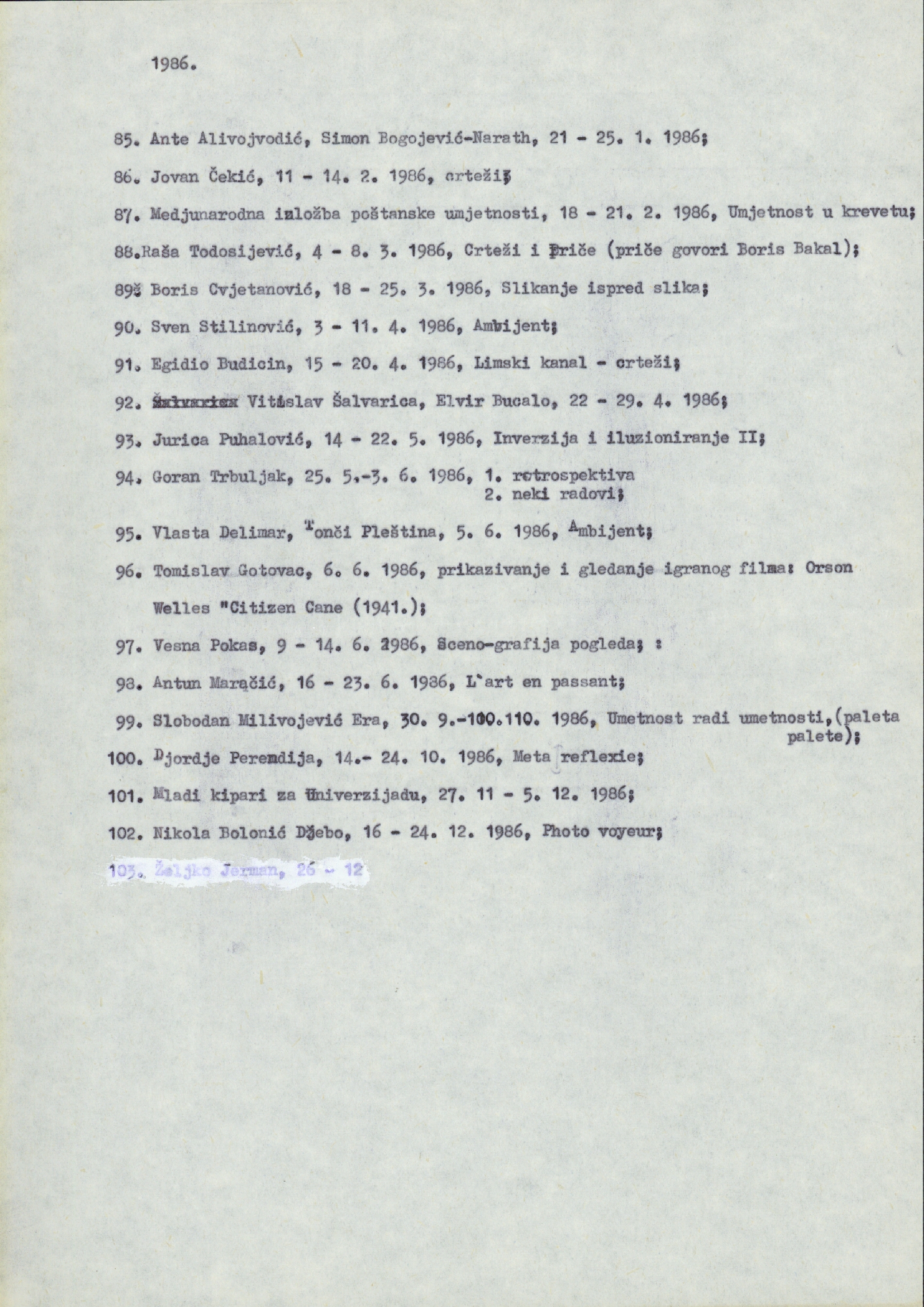 list of the exhibitions in PM in 1986