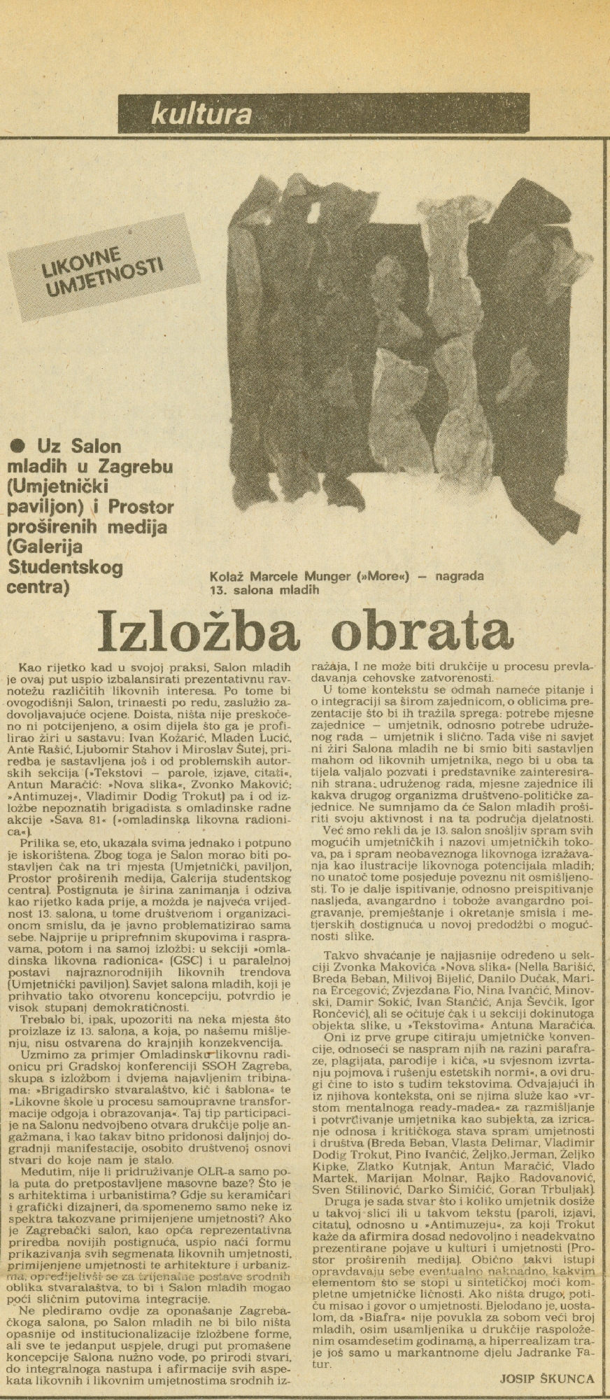 article "Izložba obrata" by Josip Škunca ( 13. salon maldih)