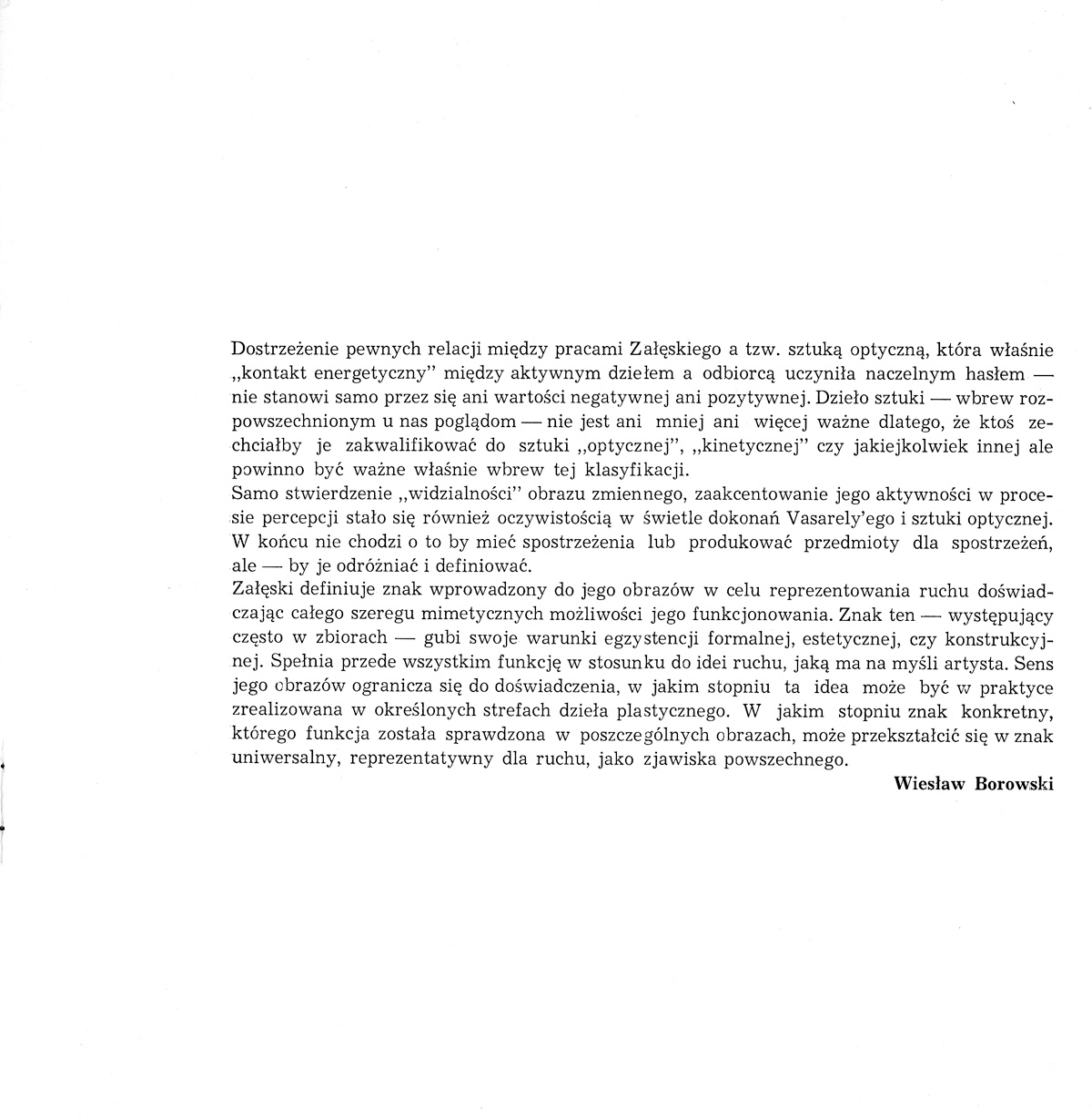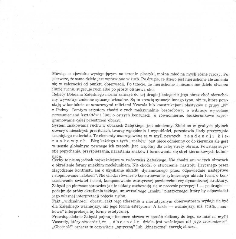 Katalog wystawy Bohdana Załęskiego, Galeria Foksal, Warszawa 1966 (tekst Wiesław Borowski)